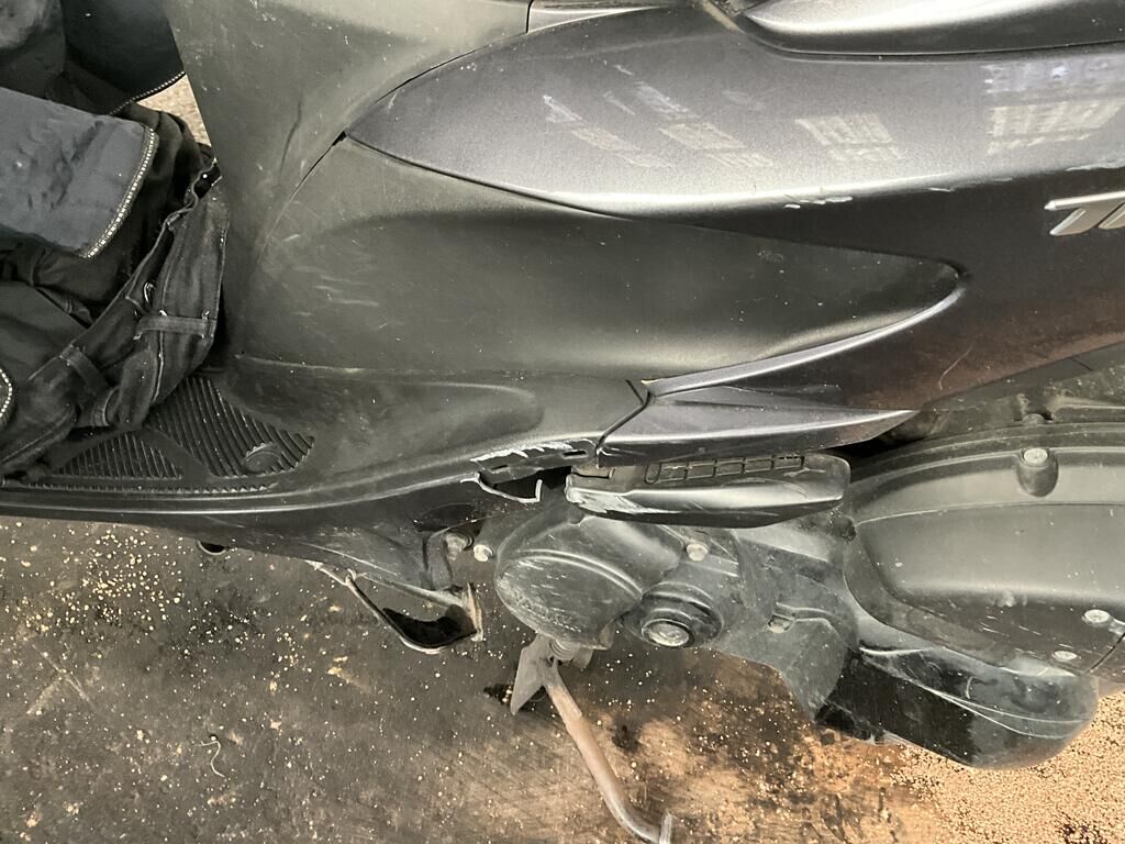 Carénage flanc GA et DR, rétroviseurs GA et DR, tôle d’échappement, carter GA, filtre à air endommagés.