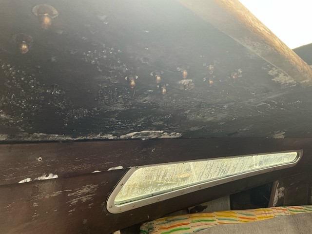 Backbord (linke Seite) Freibord Backbord beschädigt. Unterwasser Backbord beschädigt. Steuerbord (rechte Seite) Bug (vordere Partie) Innenraum |