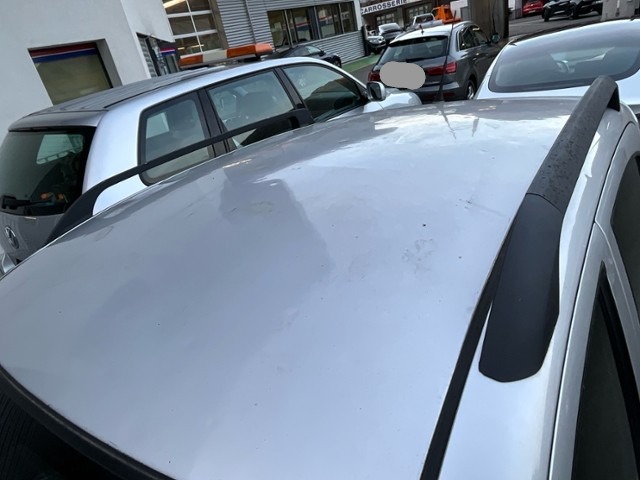 Beschädigungen Links Anstoss links im Bereich der A-Säule. Front Hagel Weitere Beschädigungen |