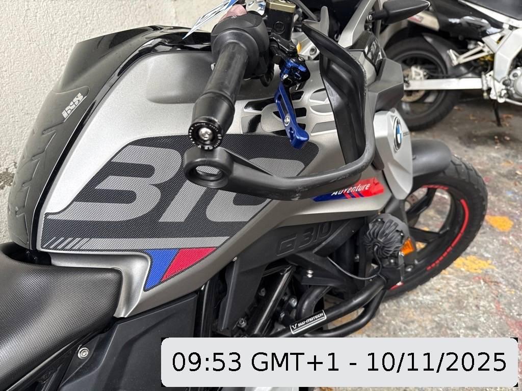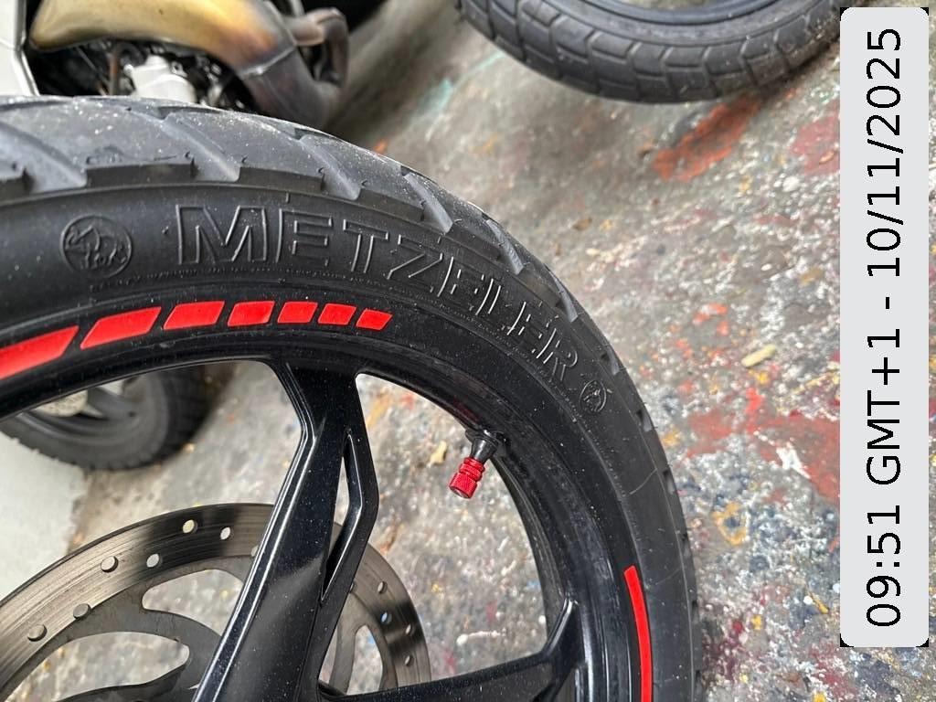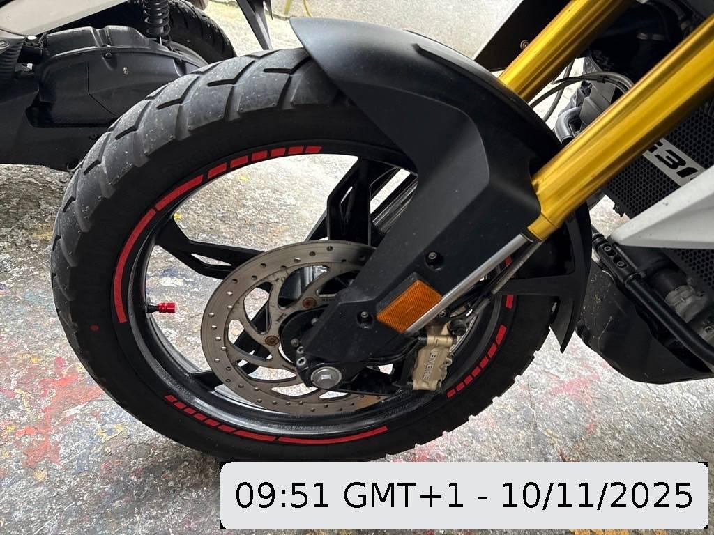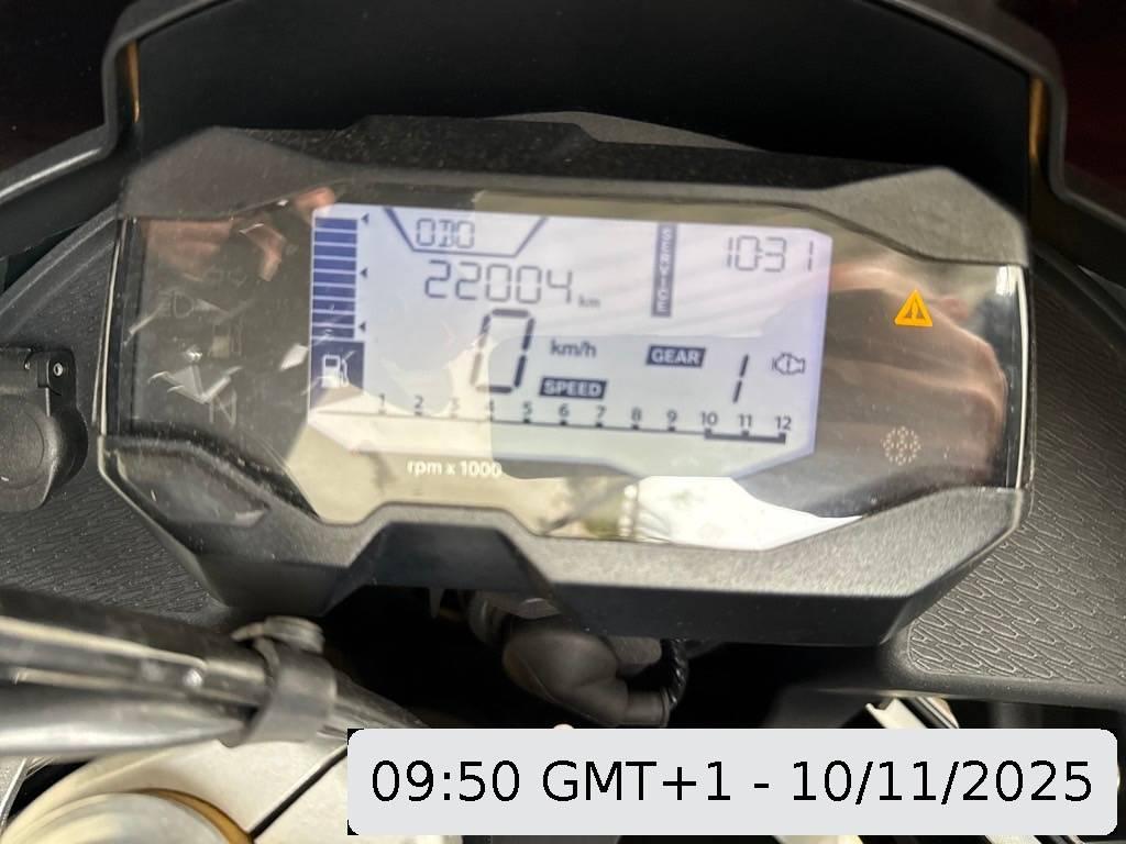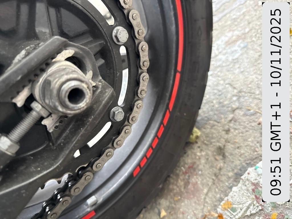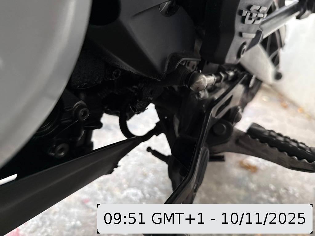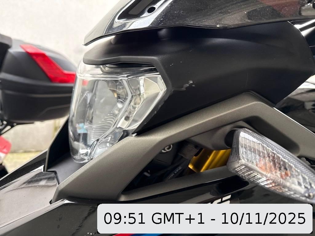 Antrieb, Armaturen, Auspuffkollektor, Fussraster rechts, Gabelholm, Getriebe, Kabelstrang, Kupplungsgehäuse, Kühler, Lenkanschlag, Lenkschloss, Motor, Motorgehäuse, Rad hinten, Rad vorne, Rücklicht, Scheinwerfer, Schutzblech hinten, Schwinge, Tank, Verschalungen rechts, Windschutzscheibe, Zündschloss