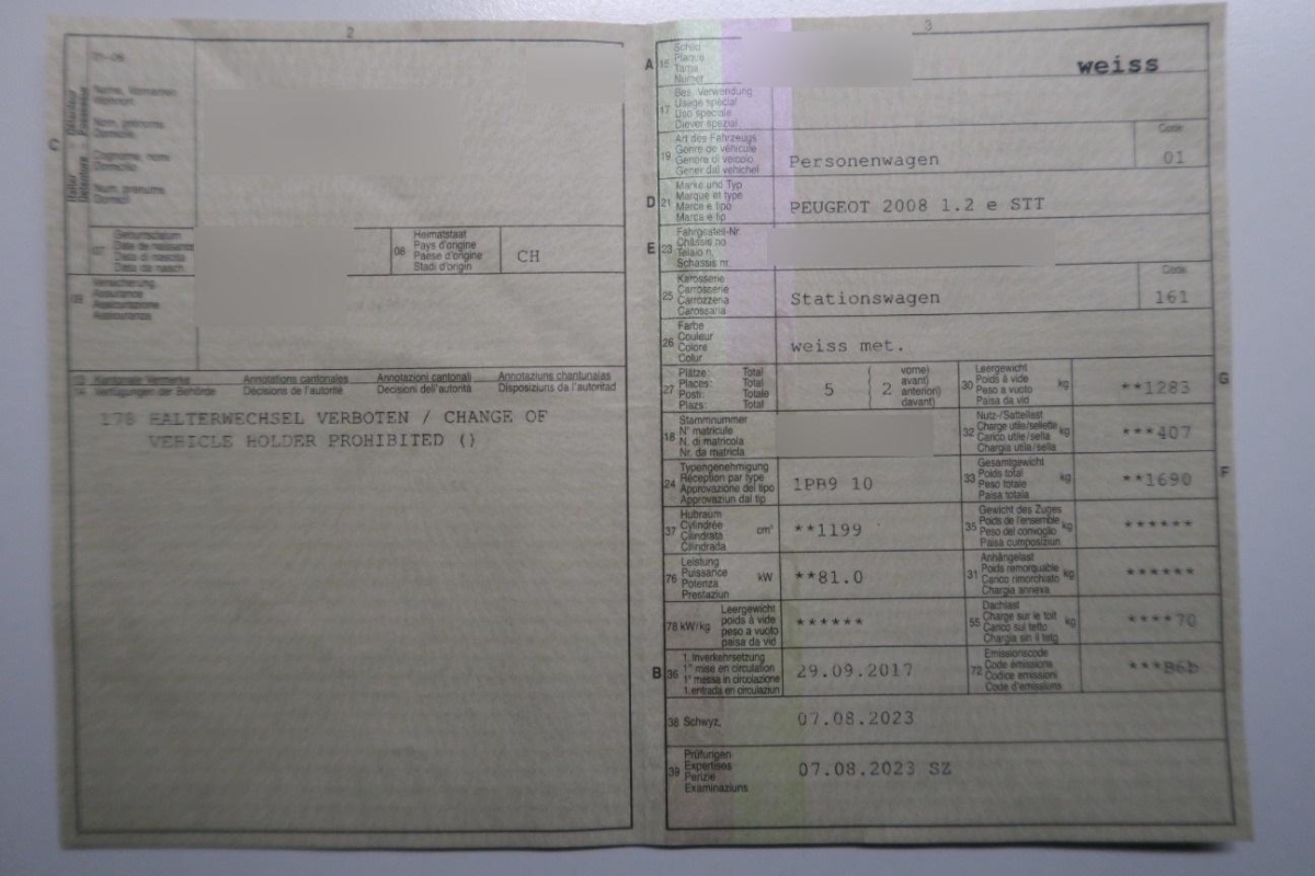 | Fahrzeugausweis | Vorhanden |