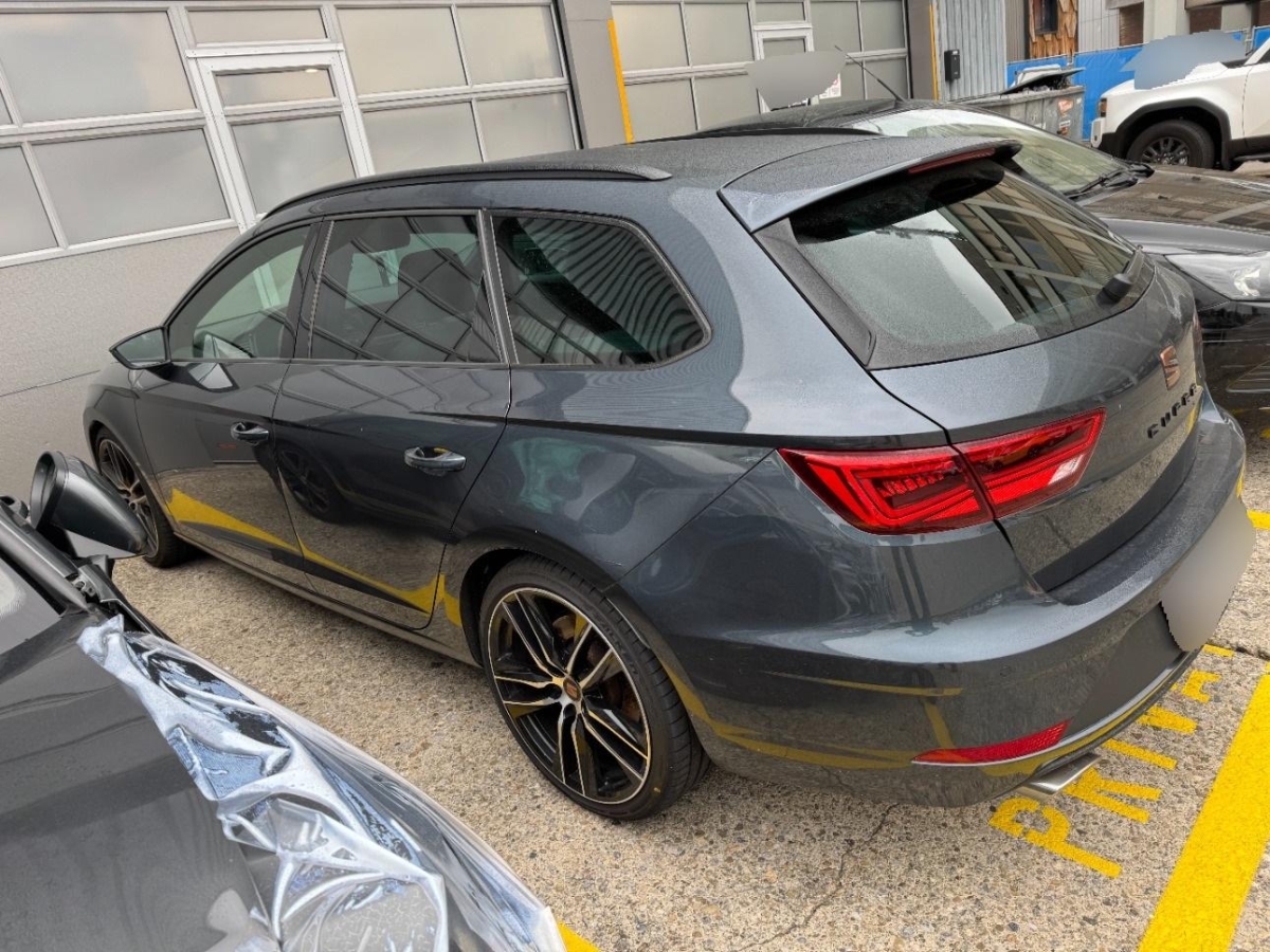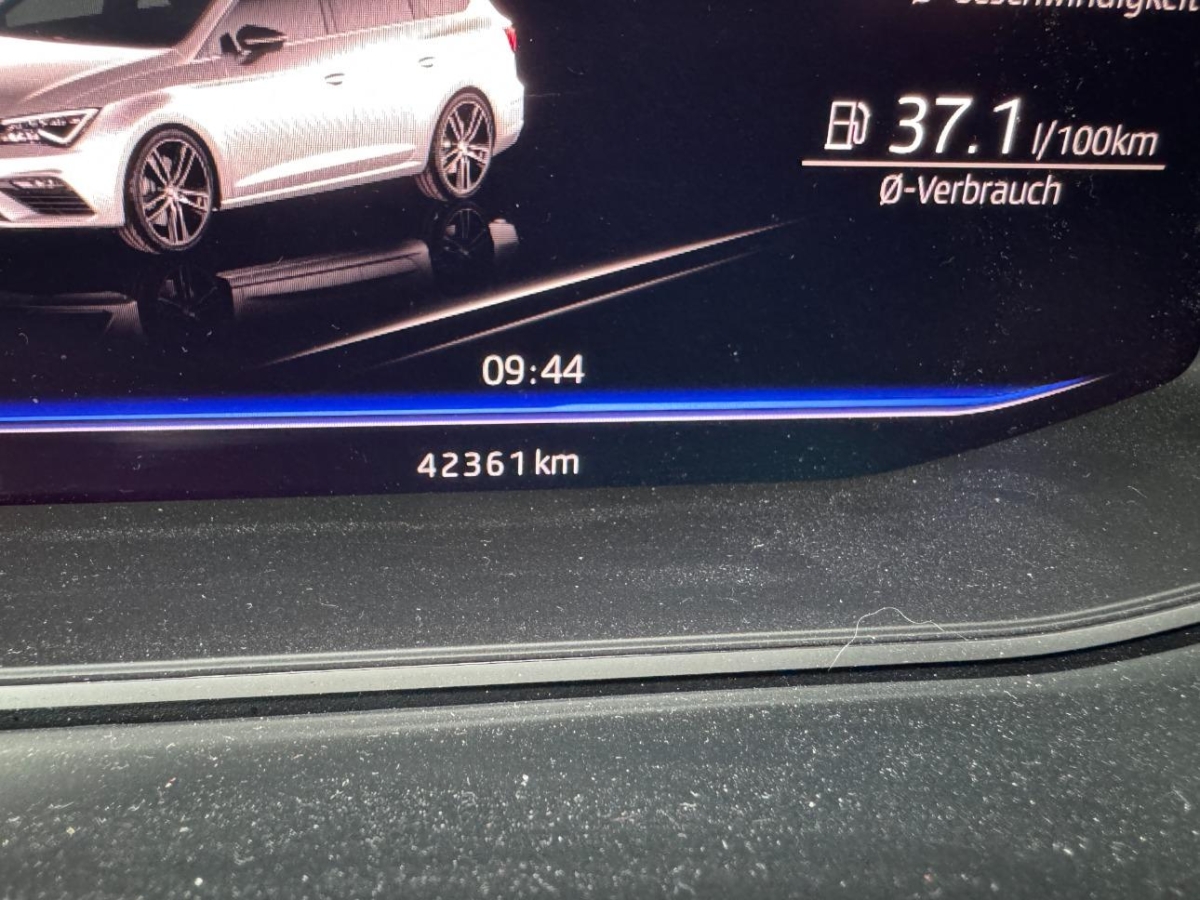 Media: Mobiltelefon Freisprecheinrichtung Bluetooth, Teppichfussmatten vorne und hinten, Türgriffe aussen in Wagenfarbe, Airbag: Seitenairbag für Fahrer und Beifahrer, Servolenkung, Zentralverriegelung mit Fernbedienung, Scheinwerferreinigungsanlage, Bremsenergie-Rückgewinnung, Fahrwerk: Adaptive Fahrwerksregelung DCC, Licht: LED Heckleuchten, Pollenfilter (Staubfilter), Licht: LED-Tagfahrlicht, Einstiegsschienen beleuchtet, Lenkrad: Ledermultifunktionslenkrad, USB-Anschluss hinten, Gurtkontrolle, Lenkrad: Lenkrad mit Schaltwippen, Progressivlenkung, Bordcomputer und Display, Licht: Nebelschlussleuchte, Media: SDXC-Kartenleser, Assist: Multikollisionsbremse, Licht: Bremslicht Drittes, Licht: Coming-home-Funktion, Licht- und Regensensor, Airbag: Window-Kopfairbags vorne und hinten, Dekoreinlagen, Räder: Notrad, Make up-Spiegel beleuchtet für Fahrer, Elektrische Fensterheber vorne mit Komfortbetätigung und Einklemmschutz, Auspuffanlage mit 2 Endrohren, Kofferraumbeleuchtung, Katalysator geregelt, Full Digital Cockpit, Sitze: Rücksitzlehne mit Fernbedienung aus Kofferraum, 12 Volt-Steckdose im Laderaum, 12-Volt-Steckdose vorne, Media: USB-Anschluss, Zwischenboden im Kofferraum, Staufach unter den Vordersitzen, Heckscheiben-Wisch-Waschanlage mit Intervall, 3-Punkt-Sicherheitsgurte auf allen Plätzen, Aussenspiegel in Hochglanzschwarz, Heckscheibenheizung, Licht: LED Scheinwerfer, Tankdeckel-Entriegelung von innen, Tire Fit (Reifendichtmittel) anstelle Faltrad, Kopfstützen vorne höhenverstellbar, Abgedunkeltes Scheibenglas (ab B-Säule), Applikationen Chrom, Airbag: Beifahrerairbag deaktivierbar, Rücksitze geteilt abklappbar, Sitze: Mittelarmlehne hinten, Elektronische Traktionskontrolle (ASR/TCS), Media: SEAT Media System Plus, Klima: 2-Zonen-Klimaautomatik, Schalthebelknauf in Leder, Make up-Spiegel rechts, Innenspiegel automatisch abblendbar, Airbag: Fahrer und Beifahrer Airbag, Stop/Start-Technologie, ISOFIX Kindersitzvorrichtung, Assist: Berganfahrhilfe (Hill Holder), Scheibenwaschdüsen beheizt, Allradantrieb permanent, Wegfahrsperre elektronisch, Sound Aktor, Gurtstraffer mit Gurtkraftbegrenzer vorne, Media: DAB+ (Digital Audio Broadcasting), Kopfstützen hinten (3), Media: 8” Farbdisplay (Touchscreen), Elektronisches Stabilitäts-Programm (ESP) mit Reifendruckkontrolle, Bremsassistent (BAS) und Sperrdifferential, Auspuffendrohr Sport Design, Licht: LED Nebelscheinwerfer, ABS, EBD elektronische Bremskraftverteilung, Fahrprofilauswahl, Sitze: Vordersitze heizbar, Lenkrad längs- und höhenverstellbar, Elektrische Fensterheber hinten, Aussenspiegel mit LED Blinker, Gurte Höhenverstellbar vorne, Airbag: Knie-Airbag für Fahrer, Aussenspiegel rechts und links beheizt, elektrisch verstell-/ und einklappbar, Sport-Heckspoiler, Innenleuchten LED, Sitze: Mittelarmlehne vorne, Einstiegsleisten in Aluminium, Sitze: Vordersitze höhenverstellbar, Handschuhfach Beleuchtet, Ladekantenschutz, Dachreling schwarz, Seitenaufprall-Schutzsystem, Wärmeschutzverglasung, Elektronische Parkbremse, Assist: Müdigkeitserkennung, Bremssättel schwarz lackiert, Getriebe: 7-Gang DSG, Leuchtweitenregulierung von innen, Media: Sprachsteuerung, Räder: CUPRA Alufelgen 8J x 19" 235/35 R19