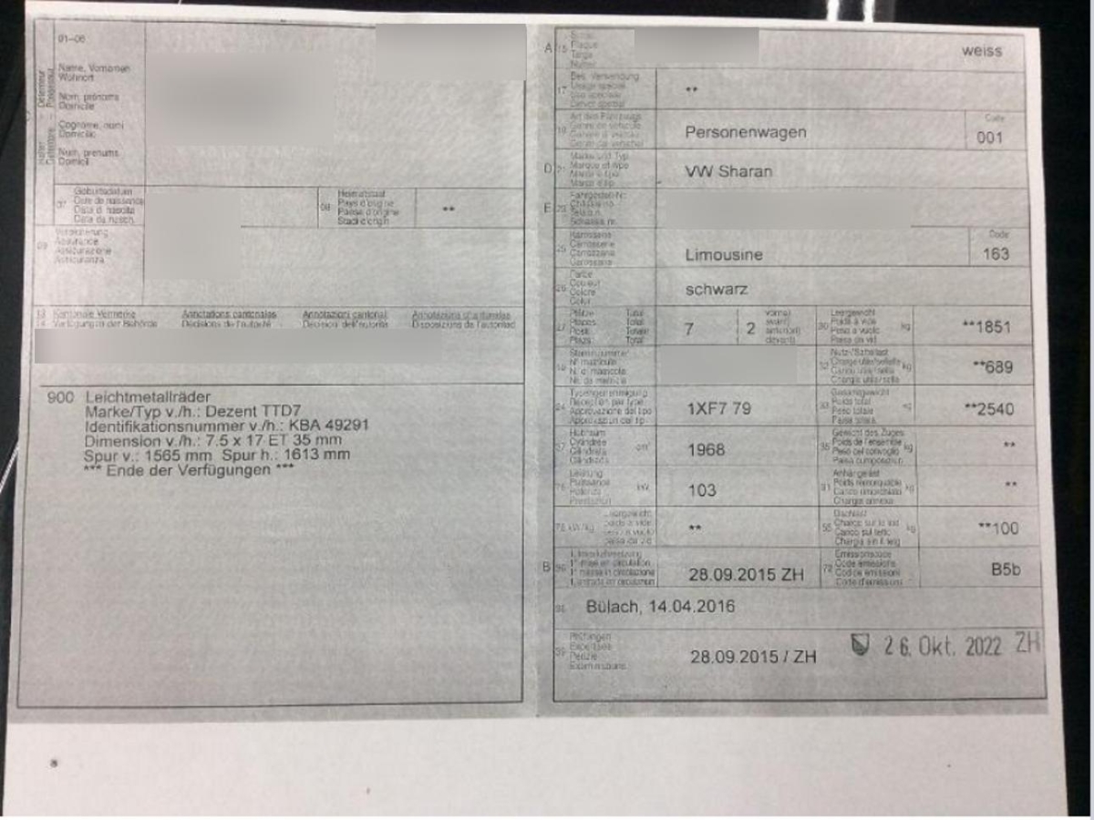 | Fahrzeugausweis | Vorhanden |