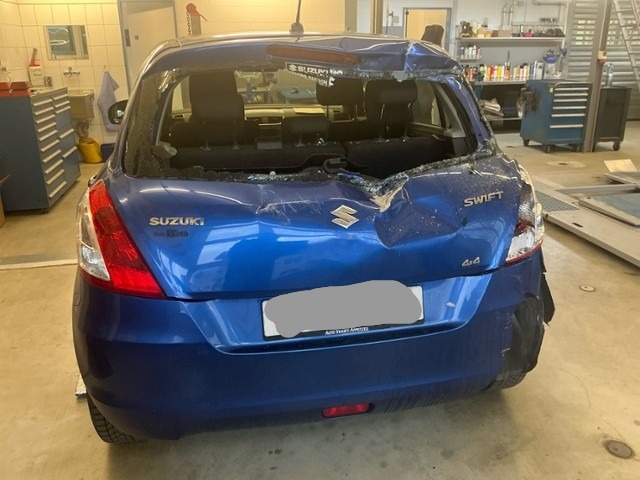 Heck Heck rechts eingedrückt. Seitenwand hinten rechts eingedrückt/aufgestaucht. Heckklappe eingedrückt. Dach Sonstige Schäden |