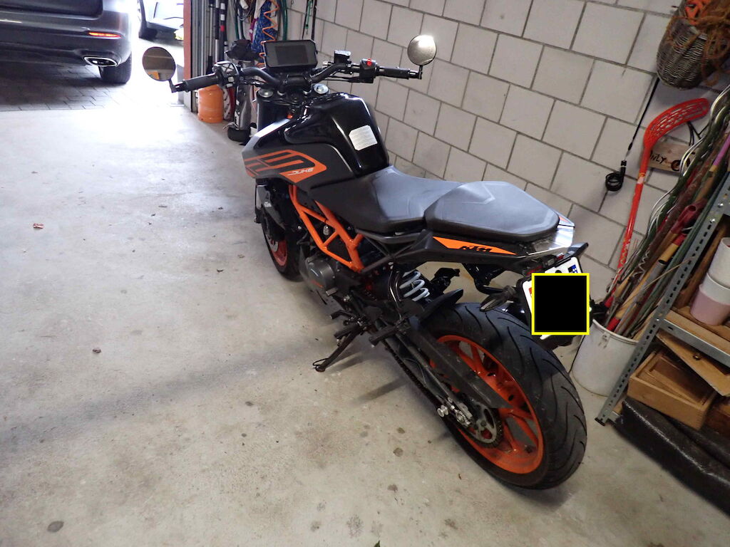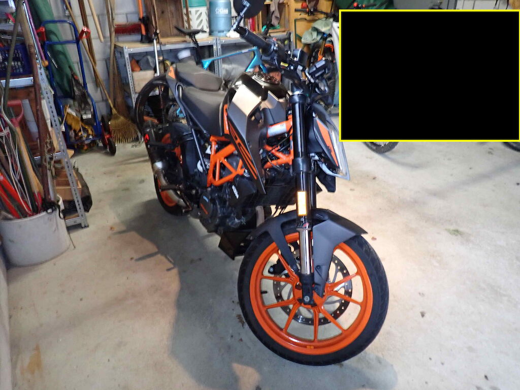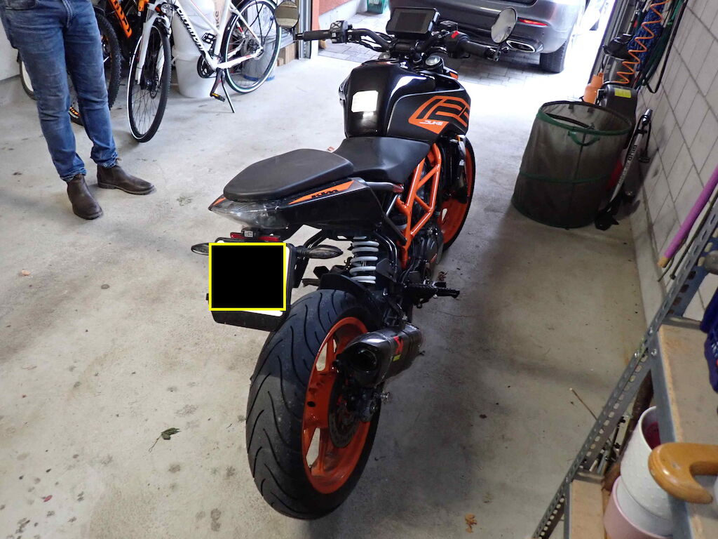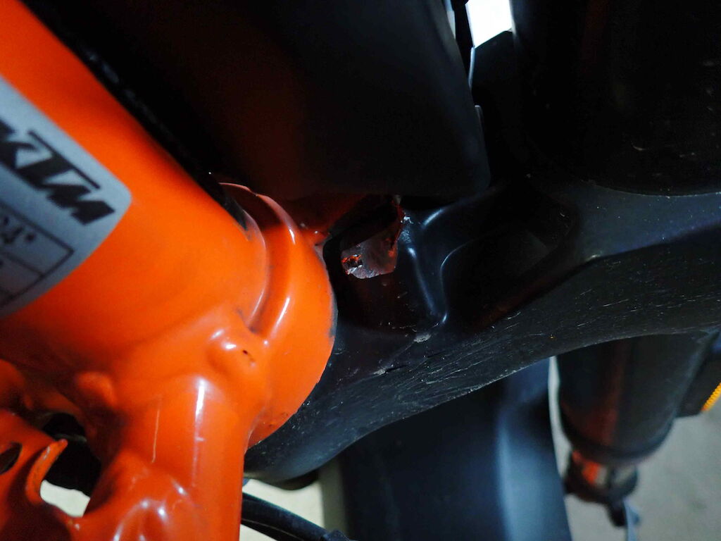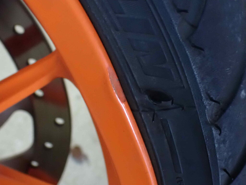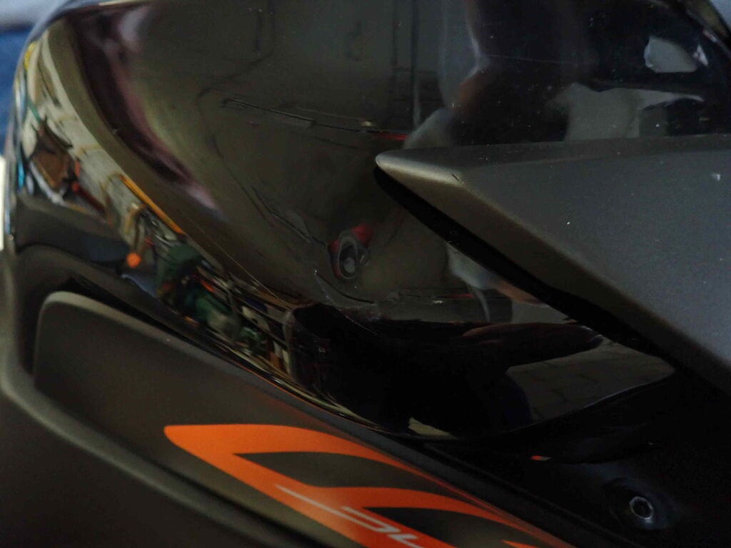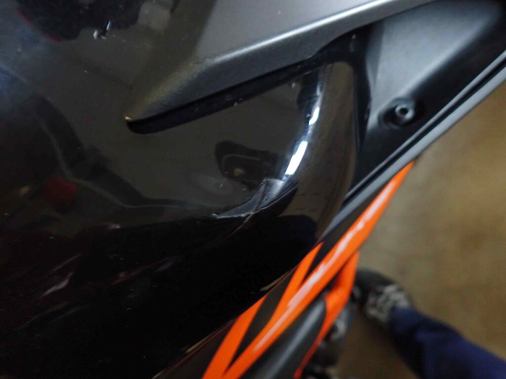 Lenkanschlag gebrochen; Gabel und Lenker gestaucht; Delle mit Lackschaden im Tank; Verschalungen, Spiegel, Bremshebel und Fussrasten haben Kratzer