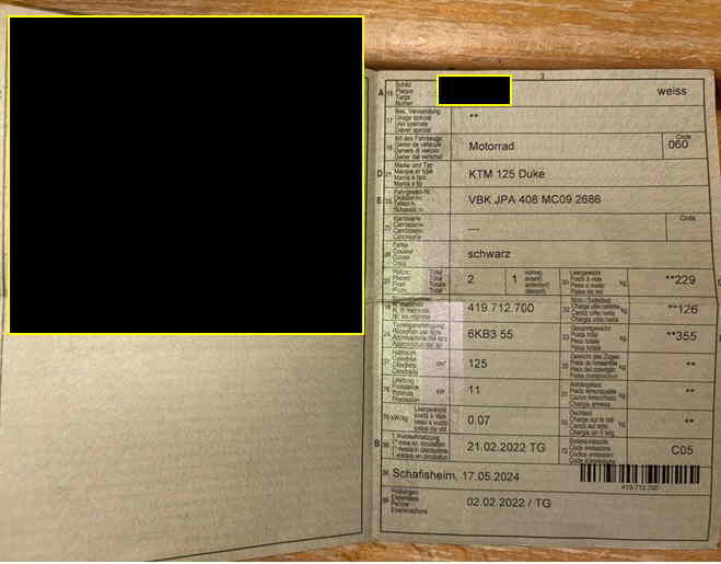 | Tipo veicolo / Costruzione / Porte | Motoveicolo / Altrui / 0 |