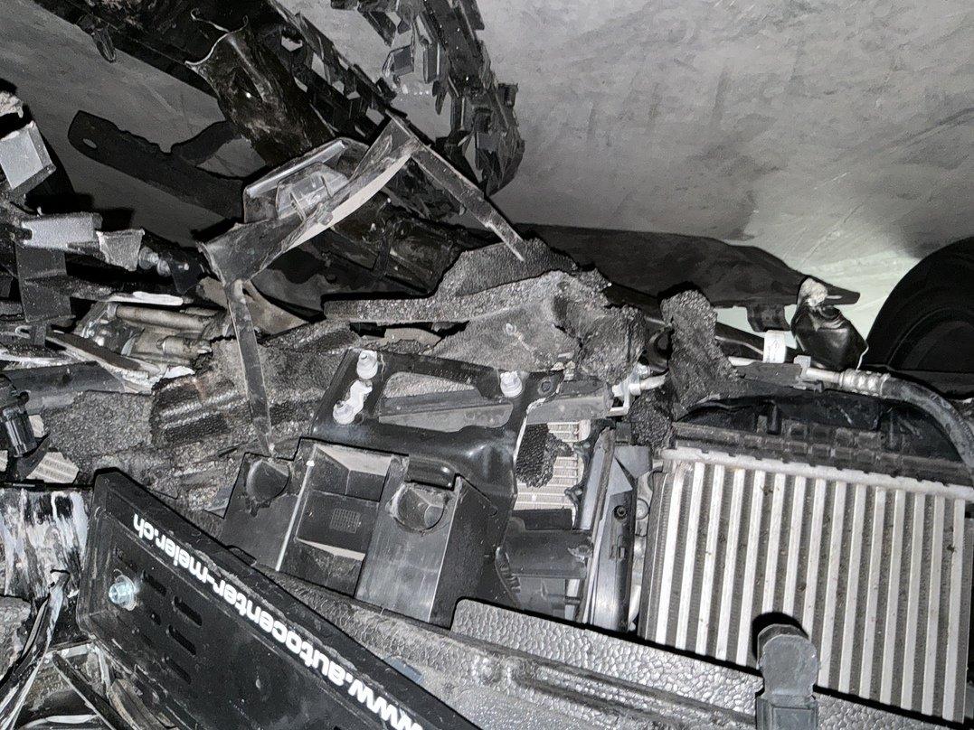 Schadensbeschreibung Choc avantBloc avant enfoncéPhares avant gauche et droit cassésRadiateurs moteur, climatisation et intercooler enfoncésTraverse avant pliéeBerceau pliéRisque sur le moteurSuspensions avant gauche et droit pliées