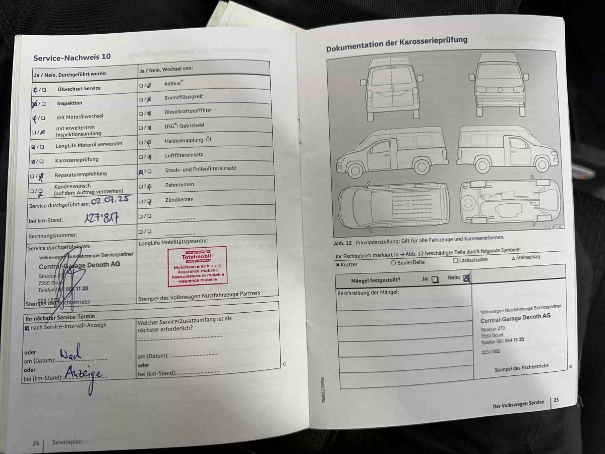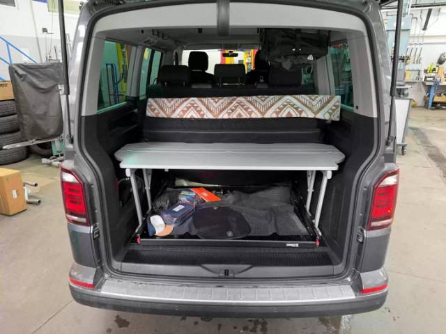 2 Klappstühle, 3-Punkt-Sicherheitsgurte auf allen Plätzen, ABS mit ASR und EDS, Abgedunkelte Seiten- und Heckscheibe, Ablage im Armaturenbrett, Ablagen in den Türen, Airbag Fahrer und Beifahrer, Allradantrieb permanent, Aussenspiegel rechts und links beheizbar und elektrisch verstellbar, Berganfahrassistent, Bettverlängerung mit Liegepolster hinten, Digital Uhr, Doppelbett mit Lattenrost oben, Drehzahlmesser, Dunkel getönte Scheiben hinten, Einparkhilfe vorne und hinten, Elektrische Fensterheber vorne + hinten, Elektronisches Stabilitäts-Programm (ESP), Haltegriffe für Einstieg, Handschuhfach, Heckklappe, Heckscheiben-Wisch-/Waschanlage, Heckscheibenheizung, Heizungsausströmer im Lade-/Fahrgastraum, ISOFIX Kindersitzvorrichtung, Innenraumbeleuchtung, Interieuroberflächen Dark Silver, Katalysator geregelt, Kindersicherung im Fahrgastraum, Klimatisierungsautomatik Climatronic, Kombiinstrument und Multifunktions- anzeige (MFA) mit monochrom TFT-Display und Müdigkeitserkennung, Kraftstofftank 70 Liter, Kunststoffboden im Fahrgastraum, LED Scheinwerfer mit LED Tagfahrlicht, automatischer Leuchtweitenregulierung und LED Heckleuchten, Leichtmetallräder (Cascavel) Bicolor schwarz 17J, Lenkrad und Schalthebelgriff in Leder, Lenkrad verstellbar, Lenkrad: Leder Multifunktionslenkrad mit Tiptronic, Leseleuchten hinten, Leseleuchten vorne, Leuchtweitenregulierung von innen, Licht: Drittes Bremslicht, Licht: Nebelschlussleuchte, Make up-Spiegel links, Make up-Spiegel rechts, Manuelles Aufstelldach, Media: 8 Lautsprecher, Media: DAB+ (Digital Audio Broadcasting), Mehrzwecktisch integriert in der Schiebetür, Multifunktionsanzeige, Multikollisionsbremse, Nebelscheinwerfer mit Abbiegelicht, Partikelfilter und Oxydationskatalysator, Polster: Sitzbezüge Stoff, Radiosystem Composition Media, Reifendruck-Kontrollanzeige, Reifenreparatur-Set mit Kompressor, Scheibenwischer vorne mit Intervall, Scheinwerferreinigungsanlage, Scheinwerferreinigungsanlage und beheiz- bare Scheibenwaschdüsen, Schiebefenster im Fahrgastraum vorne links, Seitenairbags und Kopfairbags vorne, Sequentielles 7-Gang-Getriebe DSG mit Automatikfunktion, Servolenkung, Staukasten mit Liegepolster, Steckdose 12V, Stop/Start-Technologie, Stossstangen in Wagenfarbe, Tagesfahrlichtschaltung mit Assistenz- fahrlicht und Coming-Home-Funktion, Tagfahrlicht, Tempomat, Uni-Lackierung, Verdunkelungsvorhänge Seiten- und Heckscheibe, Verschiebbare 2-plätzige Sitz-/Liegebank im Fahrgastraum, Vorbereitung für Dachträger, Vordersitze drehbar, Wegfahrsperre elektronisch, Wärmeschutzverglasung, Zentralverriegelung mit Fernbedienung, Zigarettenanzünder, Zweiklanghorn