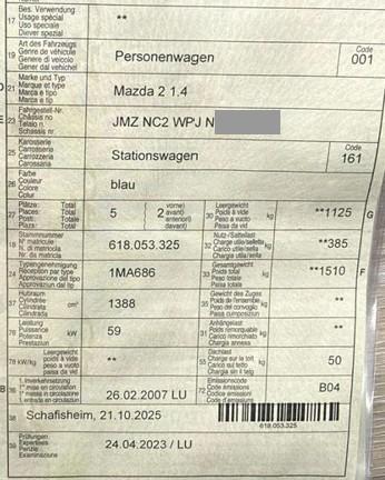 Serienaustattung Klimaanlage Airbag Fahrer und Beifahrerseite Elektronische Wegfahrsperre Elektrische Fensterheber vorne + hinten Aussenspiegel elektrisch verstellbar und heizbar Leichtmetallfelgen Servolenkung Seitenairbag Fahrer und Beifahrerseite Zentralverriegelung mit Fernbedienung Geteilte Rücksitzlehne Staub- und Pollenfilter Lenkrad verstellbar Kopfstützen vorne und hinten Gepäckraumabdeckung Leichtmetallfelgen 15″ Modulares Audiosystem Heckscheibenwischer inkl. Waschanlage Beifahrersitz mit vorklappbarer Rückenlehne Isofix-Kindersitzbefestigung ABS und EBV Elektr. Bremskraftverteilung inkl. BA Vorhangairbags vorne + hinten Nebelscheinwerfer vorne Aussenspiegel und Türgriffe in Wagenfarbe Keine Gewähr auf die Angaben der Serienausstattungen |
