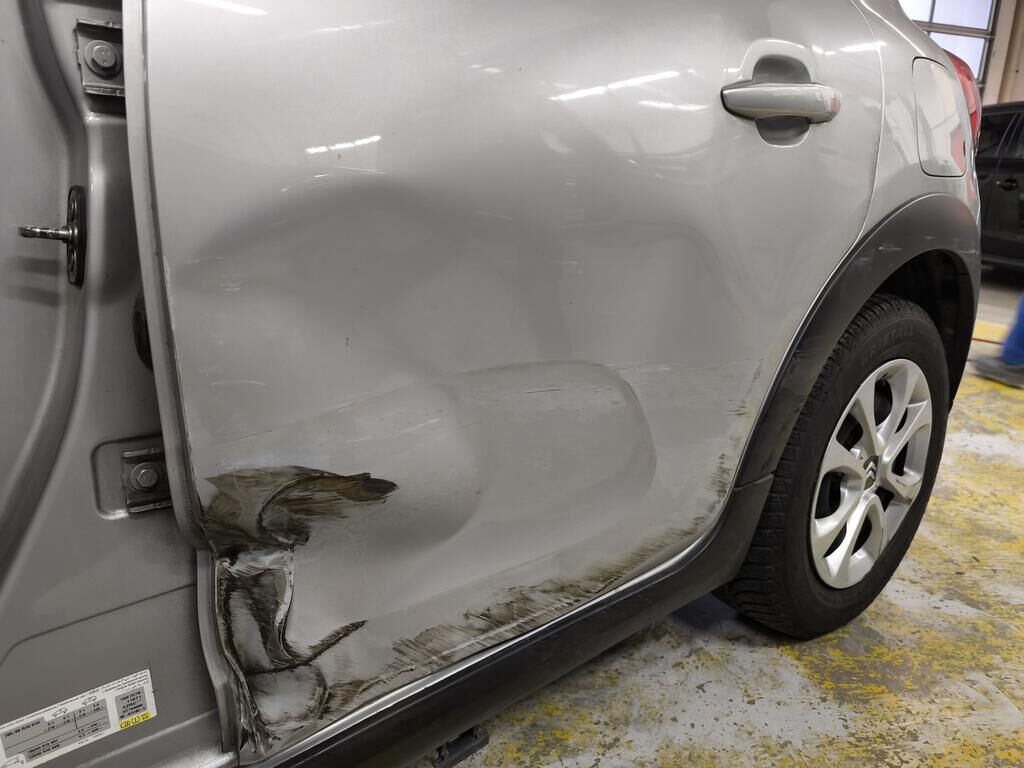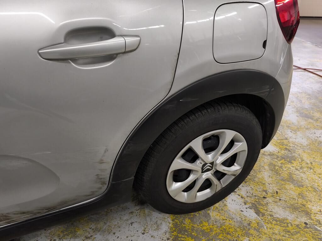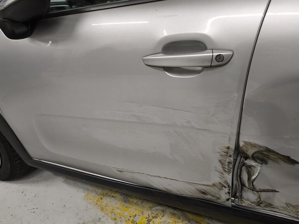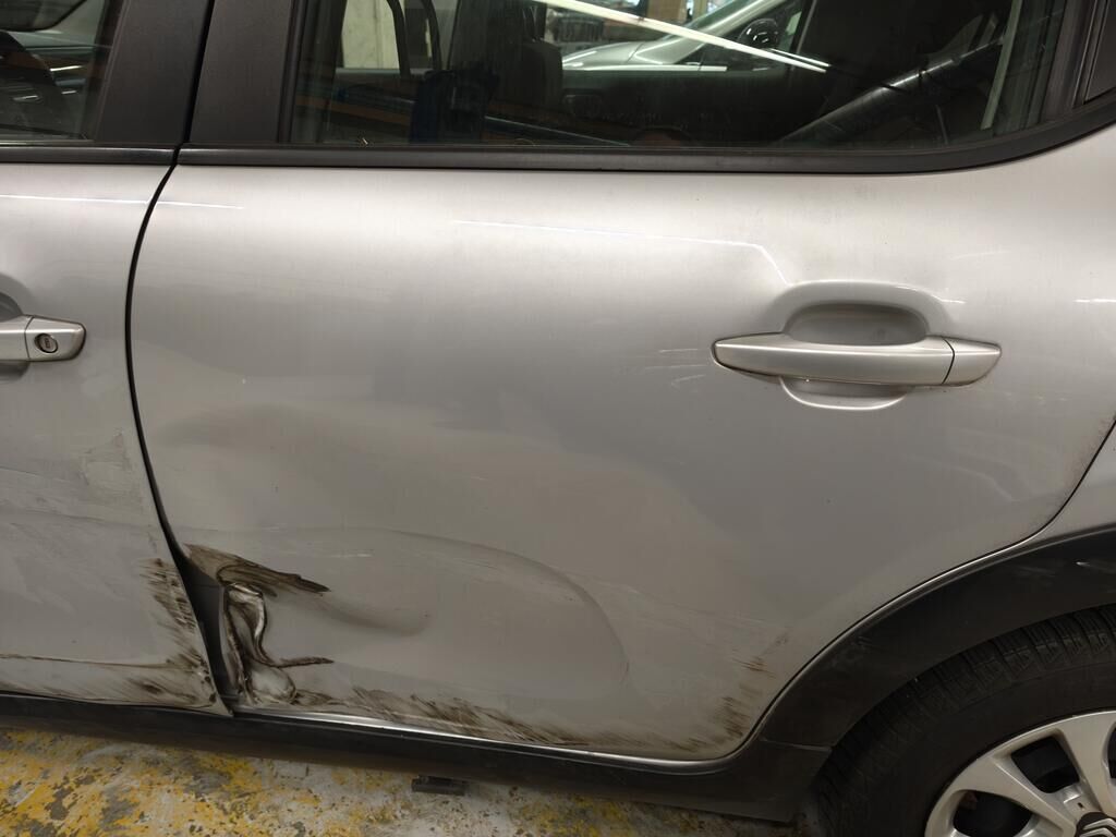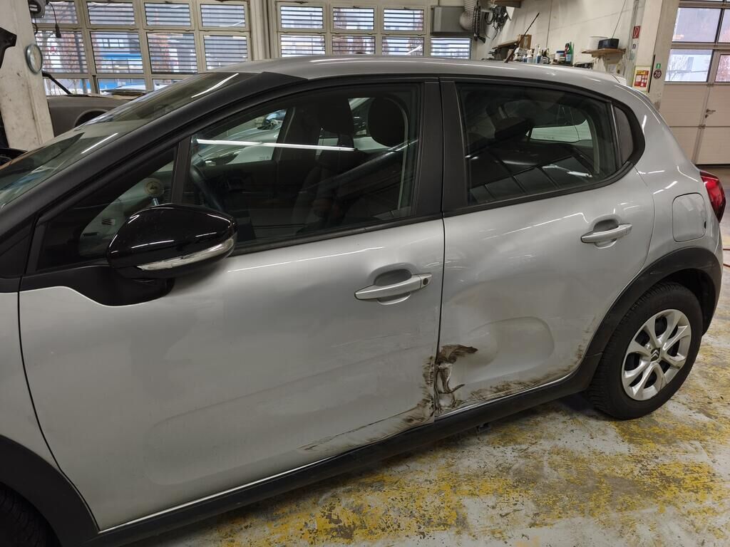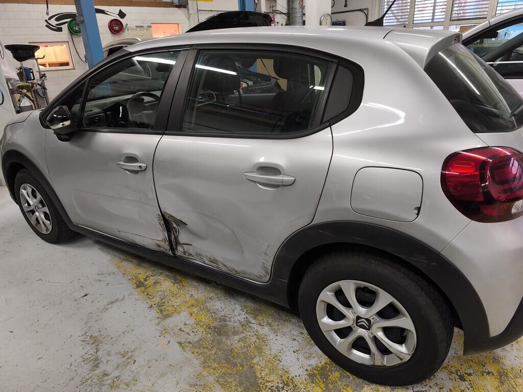 Beschädigt, deformiert und/oder gestaucht sind die Türe vorne links, die Türe hinten links, der Seitenschweller inkl. Abdeckung, die Radlaufverbreiterung, die Felge hinten links und die Radkappe hinten links. Das Fahrzeug konnte nicht geprüft werden, ist eventuell beschädigt.