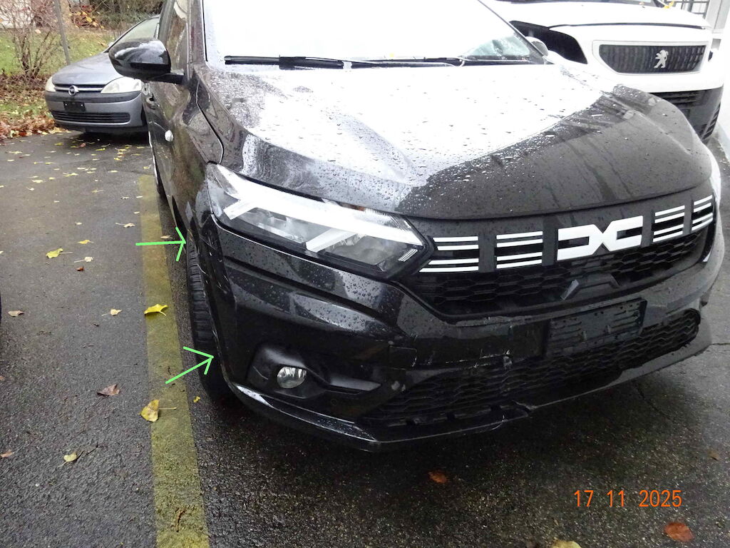 Dommage à la direction : le volant est tourné vers la gauche, mais les deux roues partent chacune dans une direction différente.
