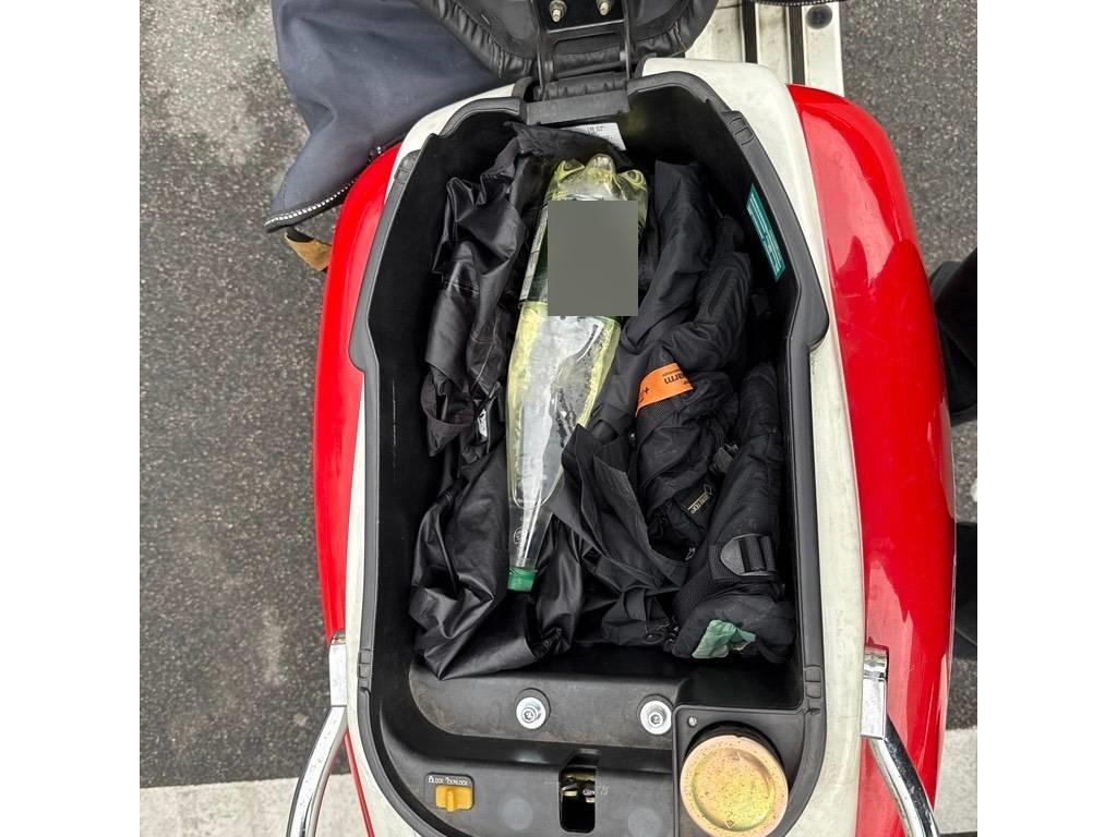 Aussenspiegel links, Front, Fussraster links, Gabelholm, Griff links, Kupplungsgehäuse, Lenker, Scheinwerfer, Schutzblech vorne, Seite links, Topcase, Verschalungen links, Windschutzscheibe