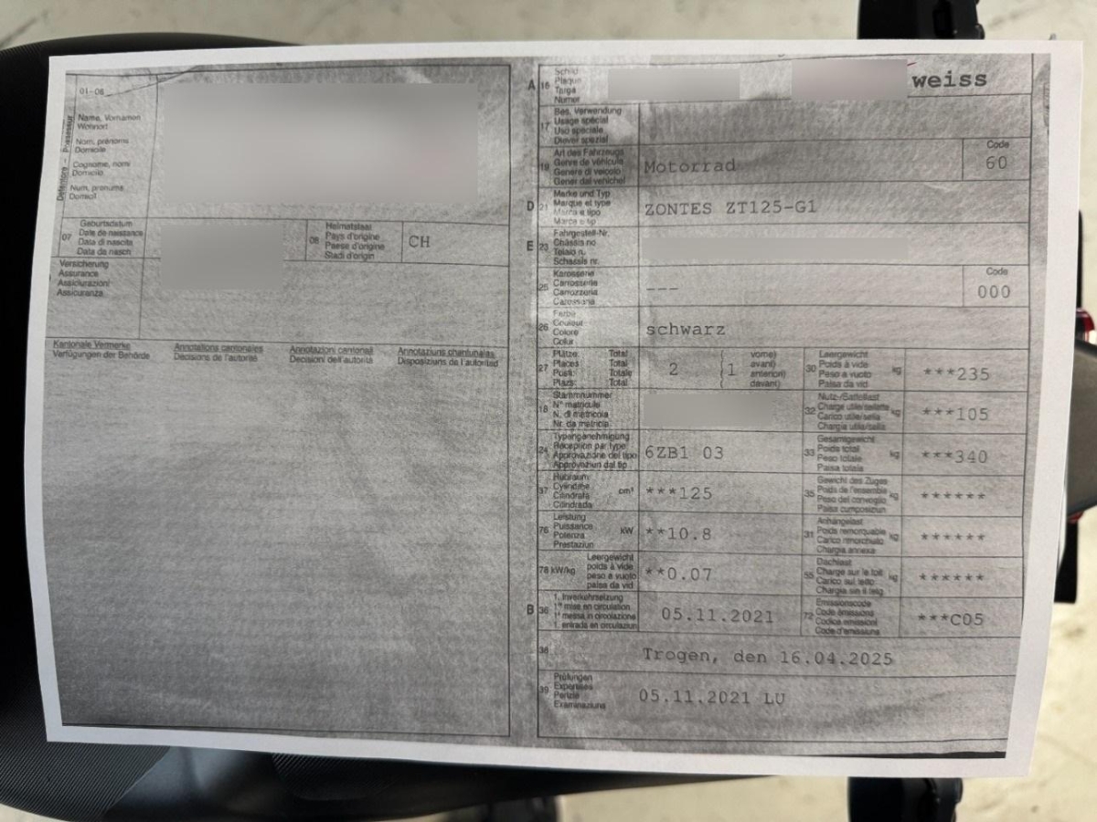 Auspufftopf, Aussenspiegel rechts, Fussraster rechts, Gabelholm, Griff links, Griff rechts, Lenker, Rad vorne links, Schutzblech vorne