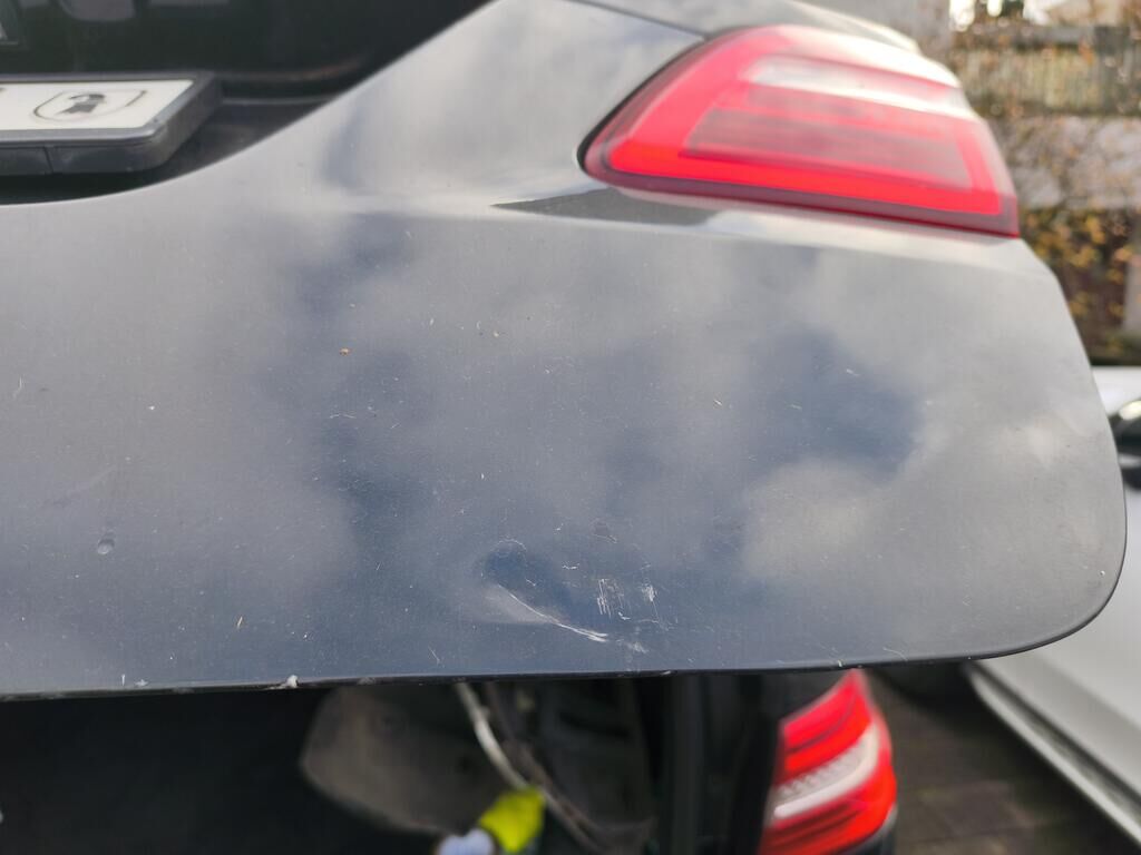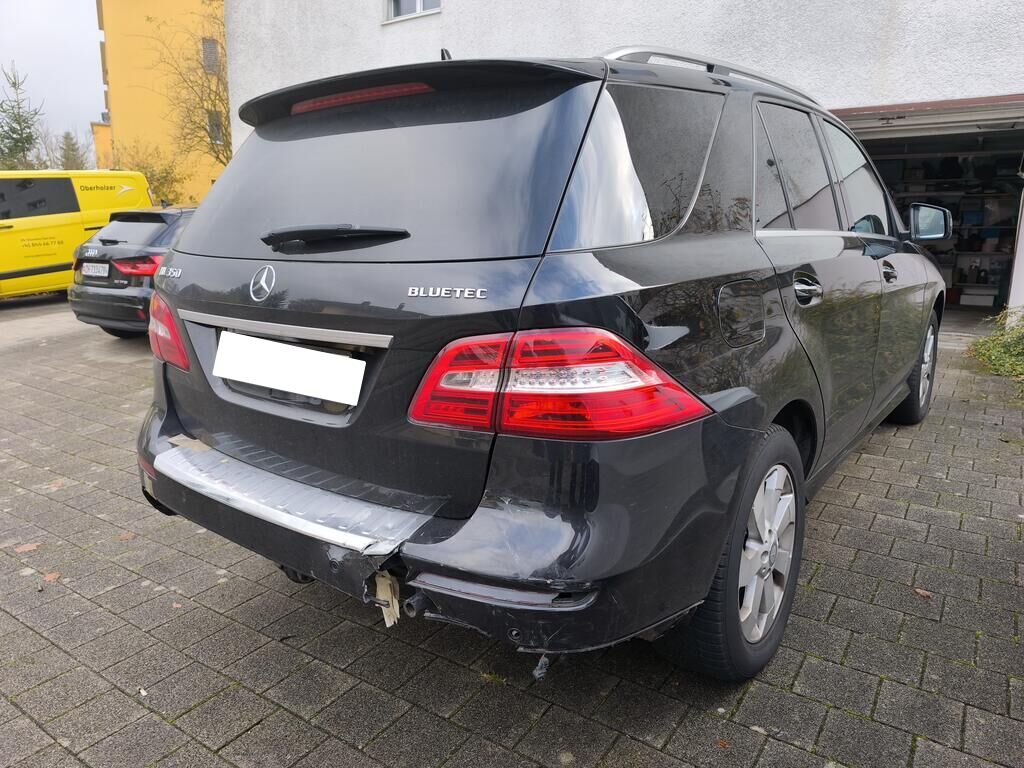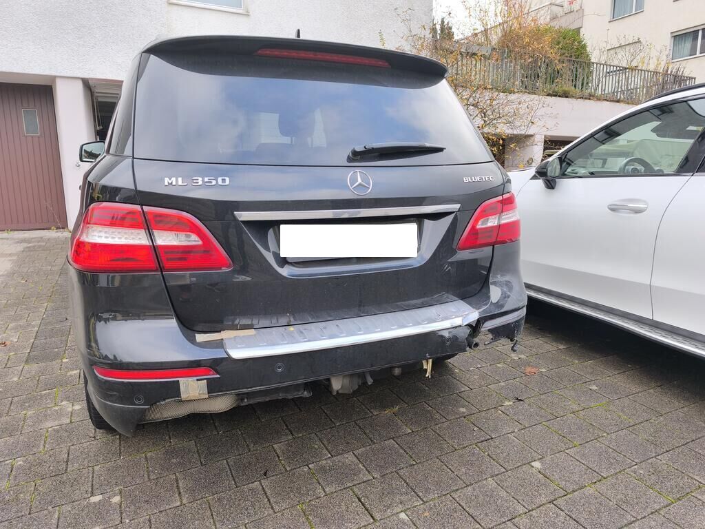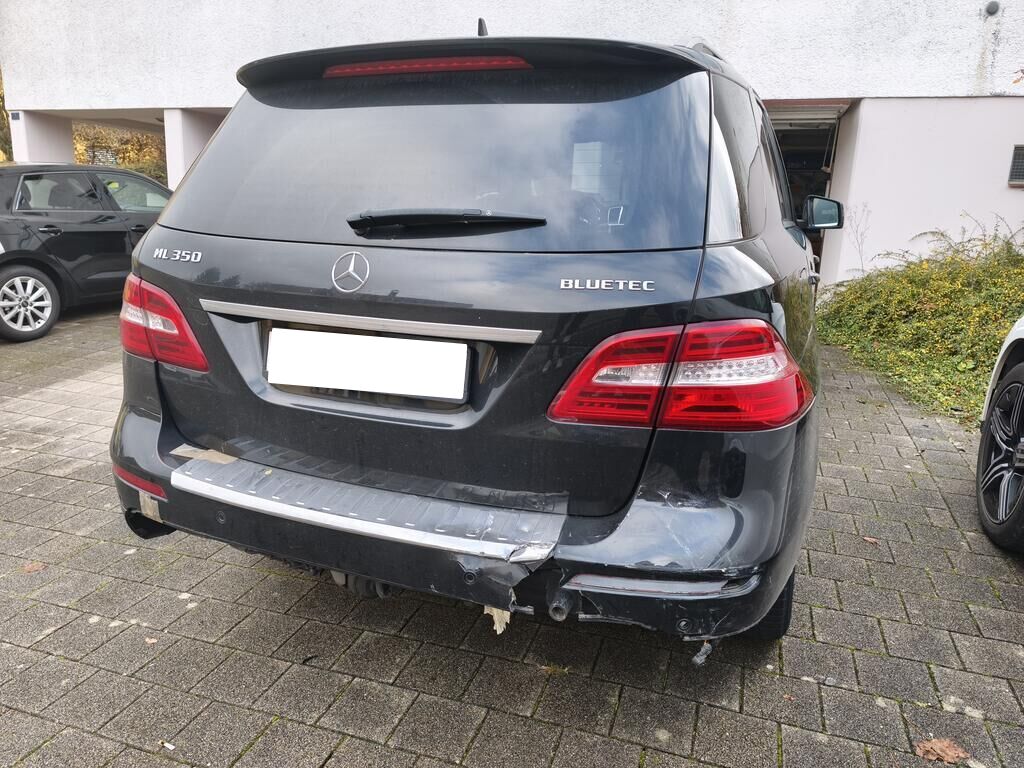 Beschädigt, deformiert und/oder gestaucht sind die Stossstange hinten inkl. Anbauteilen rechts, Der Träger der AHK, das Heckabschlussblech, der Adblue-Tank hinten rechts, die Radhausabdeckung hinten rechts und die Heckklappe.