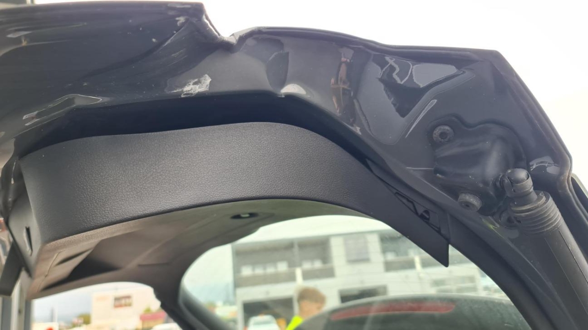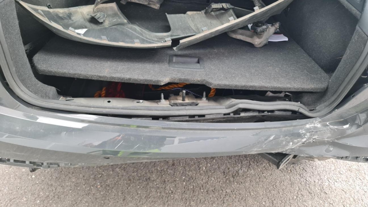 Auspufftopf, Gurtstraffer ausgelöst, Heck, Heck links, Heck rechts, Heckblech, Heckdeckel, Kofferraumboden, Kofferraumboden, Querträger, Radhaus hinten rechts, Rücklicht links, Rücklicht rechts, Seitenwand rechts, Stossstange hinten, Türe hinten rechts