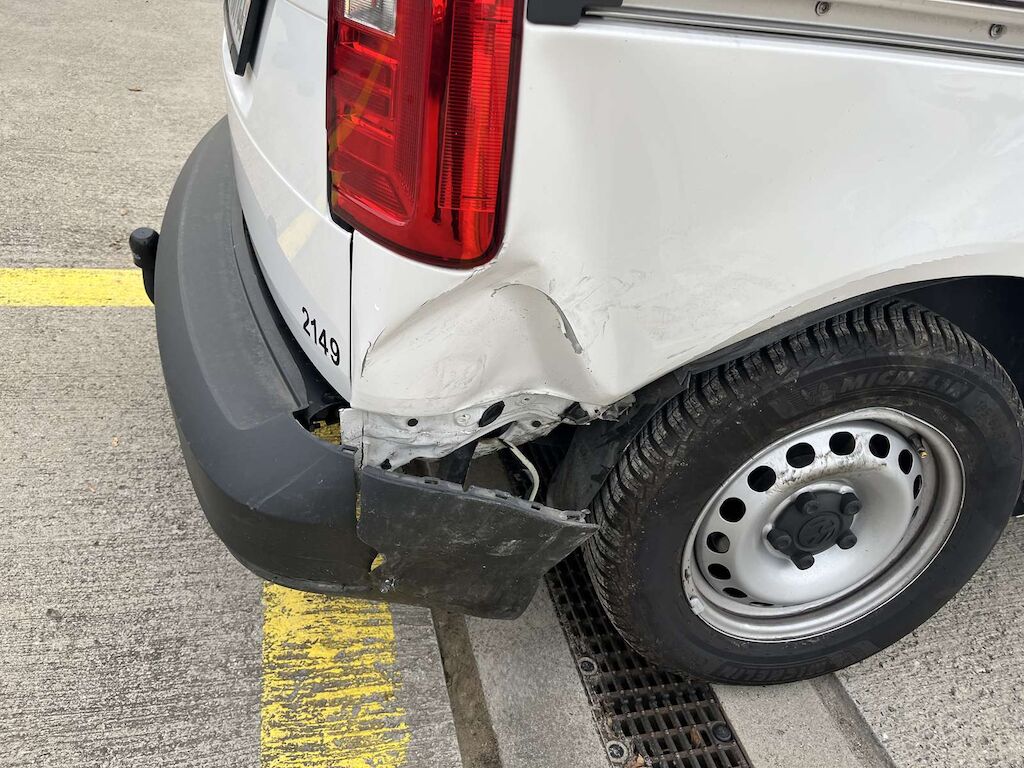 Choc arrière droit: Aile arrière droite, feux arrière droit, pare-chocs arrière et train arrière endommagés et enfoncés.