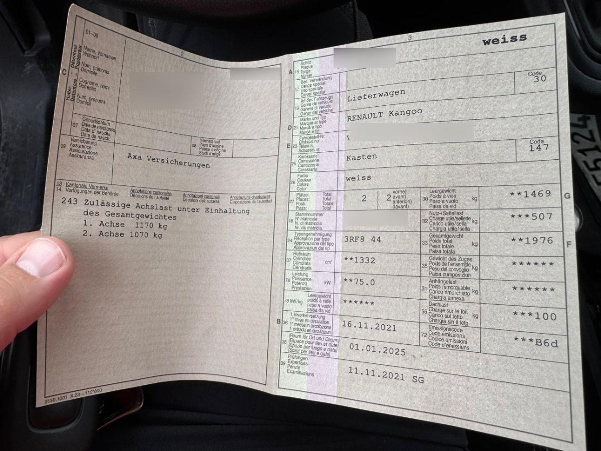 Licht: Nebelschlussleuchte, Sitze: Drehbares komplettes Lastschutzgitter + Beifahrersitz umklappbar, Servolenkung, Airbag: Fahrerairbag, Schublade Easy Life, Trennwand verblecht, Hinteres Seitenblech, Aussenspiegel in schwarz, Klima: Manuelle Klimaanlage, 3-Punkt-Sicherheitsgurte und Gurtstraffer, Seitenwand rechts verblecht, Licht: Licht- und Regensensor, Drehbares komplettes Lastschutzgitter, Kabinenbeleuchtung Glühbirne, Elektrische Fensterheber vorne mit Schnellsenktaste fahrerseitig, Antriebsschlupfregelung (ASR), Licht: Drittes Bremslicht, Getriebe: 6-Gang-Getriebe, Assist: Berganfahrassistent (HSA), Räder: Radzierblenden medium Carten 15″, Assist: Elektronisches Stabilitätsprogramm (ESC) mit Untersteuerungskontrolle und Antriebsschlupfregelung (ASR) mit Berganfahrhilfe (HSA), Kopfstützen vorne, Katalysator geregelt, Assist: E-Call Notrufsystem, Frontscheibenheizung, Schalthebelknauf aus Chrom, Bodenbelag Gummi, Aussenspiegel elektrisch einstell und beheizbar, Ablagefach im Dach vorne, Wegfahrsperre elektronisch, Sitze: Fahrersitz höhenverstellbar, Garantie: Renault Garantie 3 Jahre oder 100’000 km, Sonnenblende Fahrer und Beifahrerseite mit beleuchtetem Spiegel, Licht: LED-Tagfahrlicht, Türen: Flügeltüren hinten 180°, verblecht, 3-Knopf-Schlüssel versenkbar, Räder: Reifenreparatur-Kit (Tire Fit), Türen: Schiebetüre rechts verblecht, Seitenwand links verblecht, Dekor: Innenharmonie Noir, Lenkrad: Multifunktionslenkrad aus geschäumtem Kunststoff, Türgriffe aussen in schwarz, Assist: Anti-blockiersystem (ABS) mit Notbremsassistent, Räder: Stahlräder 195/65 R15, Lackierung: Uni-Lackierung, Innenverkleidung, Sitze: Beifahrersitz ohne ISOFIX-Kindersitzbefestigung, Drehzahlmesser, Zentralverriegelung der Türe mit Fernbedienung, Gurtkontrolle, Media: Radiovorbereitung, Antenne und Entstörung, Polster: Sitzbezug Inti