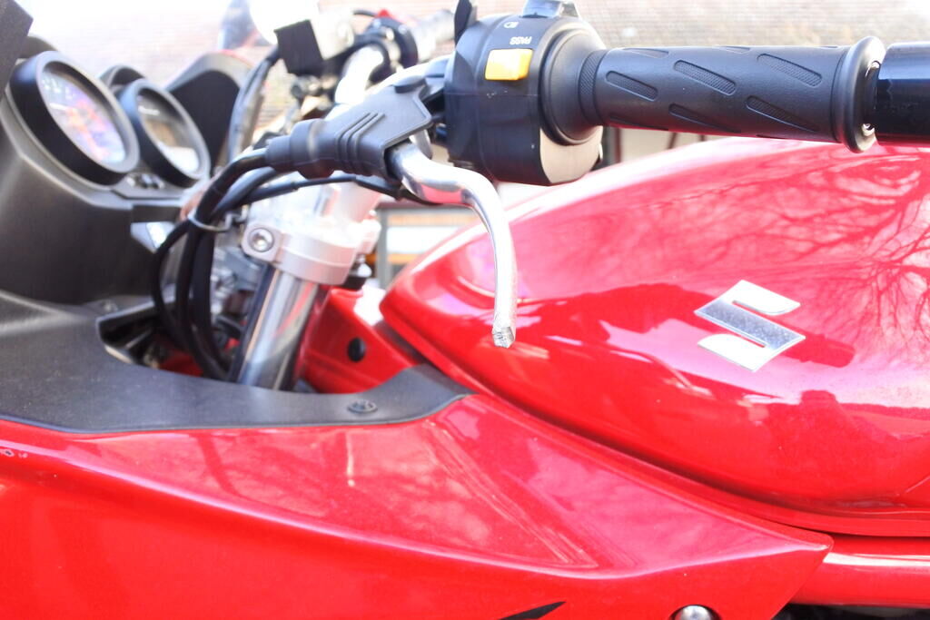 Der Lenker, das Endgewicht, der Kupplungshebel, der Rückspiegel, die Frontschale sowie deren Innenverkleidung, der Blinker, der Sturzbügel, der Fussraster mit Schalthebel, der Soziusraster mit Halterung, die Blinkleuchte und das Topcase sind beschädigt.