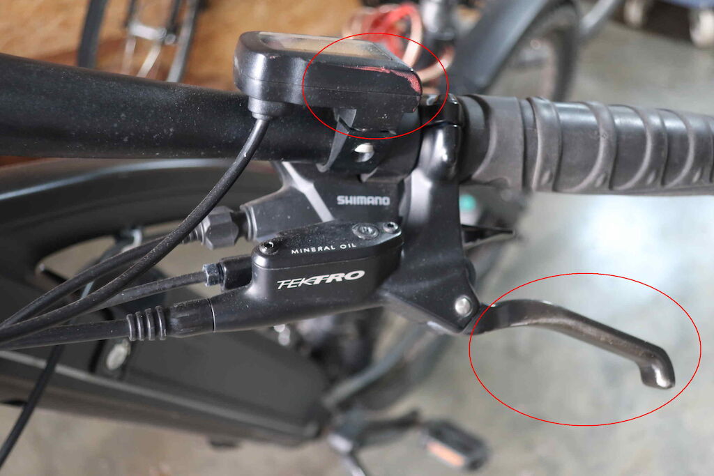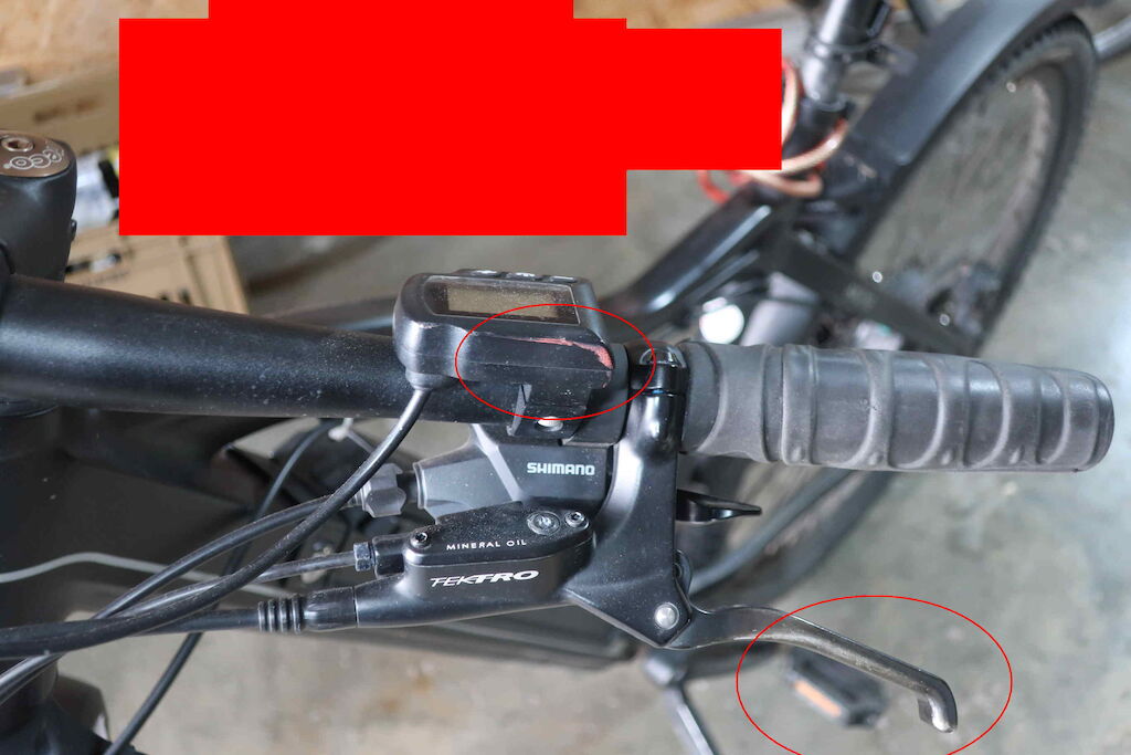 Kollision mit einem Personenwagen: Lenkergummi rechts, Bremshebel rechts und links, Computerr links Pedale rechts, Gabel und diverse Kabelzüge ?