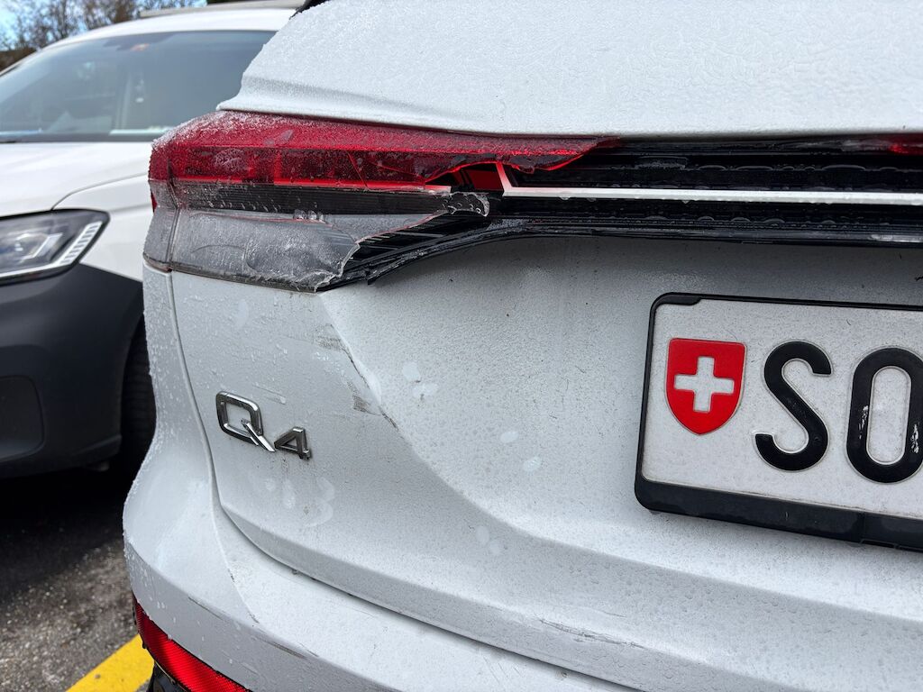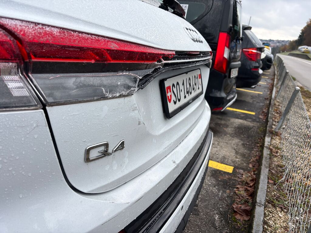 Kollisionsschaden, Aufprall in Fahrzeugfront und -heck mit Beschädigung von Stossstange vorne, Frontmodul, Scheinwerfer, Kotflügel links, Stosstange hinten, Heckklappe sowie diversen Anbauteilen.