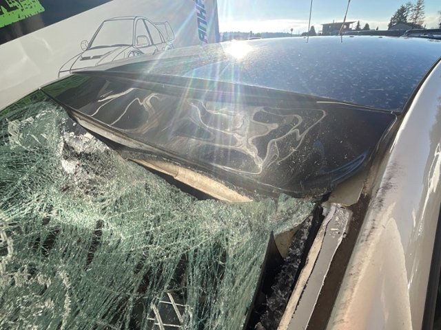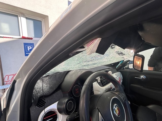 Links Anstoss links im Bereich der A-Säule. Rechts Front Innenraum Glas Dach Sonstige Schäden |
