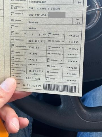 Opel Vivaro Kaw. 2.7 t L1 H1 1.6 CDTI 95 114’739 km – SCC