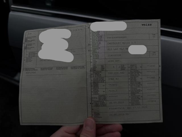 Beschädigungen Links Linke Seite beschädigt. Tür vorne links ist eingedrückt. Tür hinten links ist eingedrückt. Rechts Innenraum Sonstige Schäden Weitere Beschädigungen |