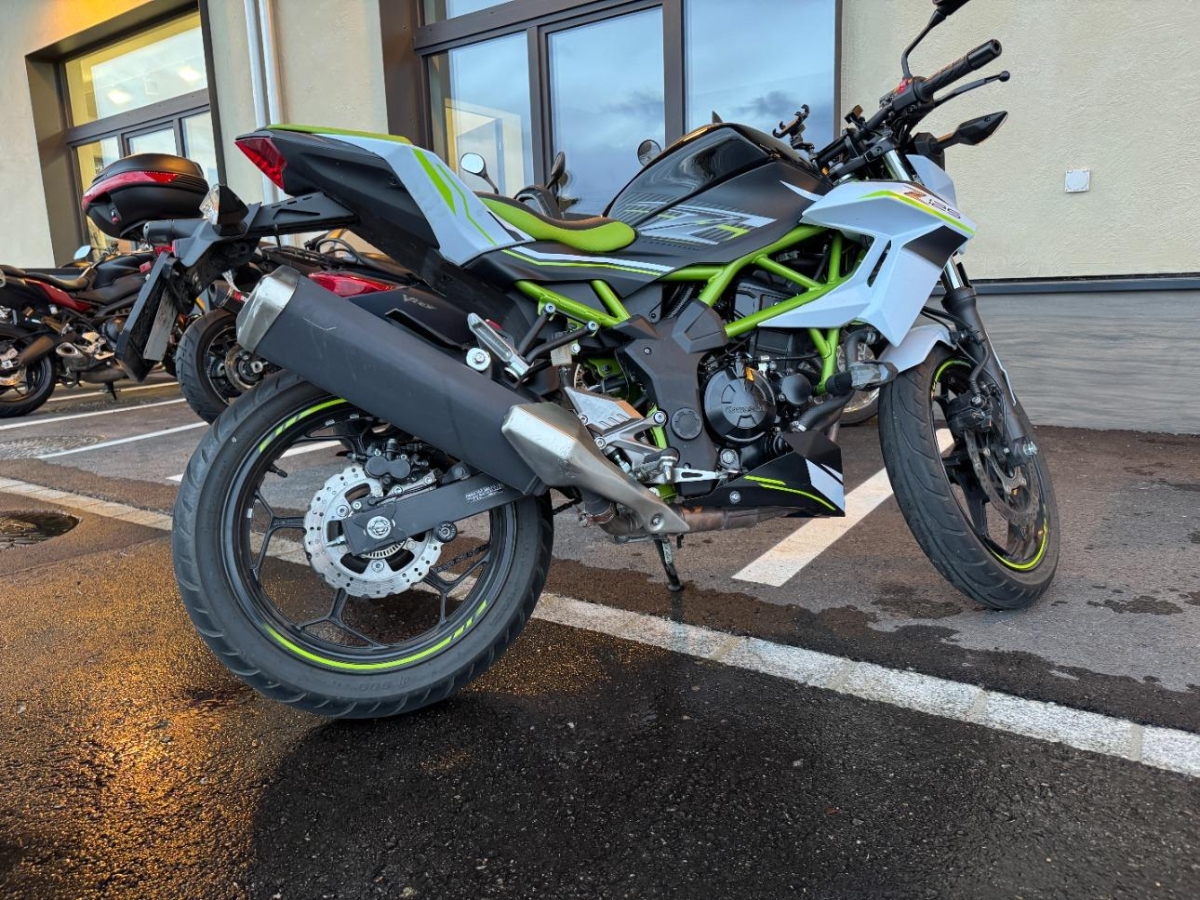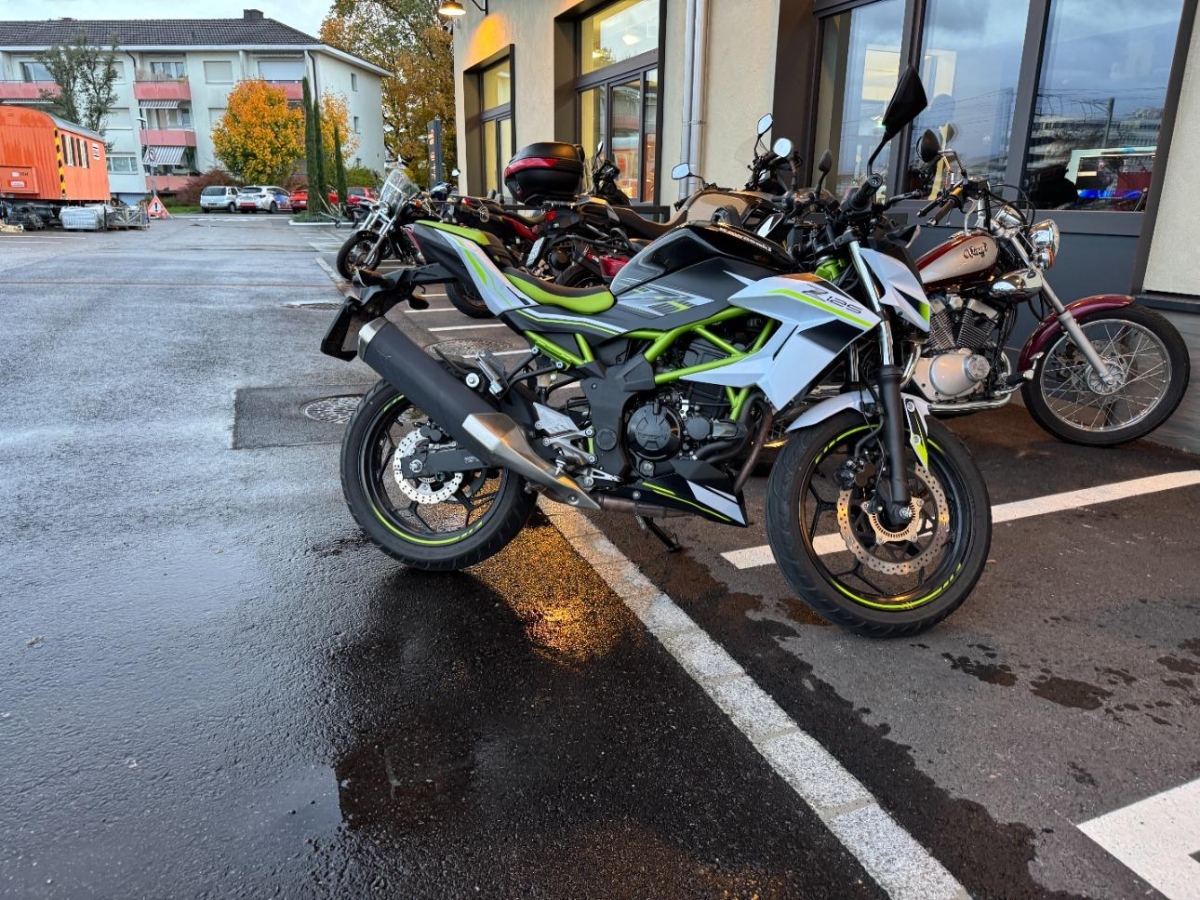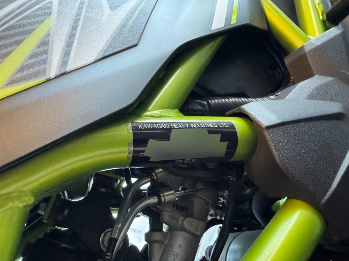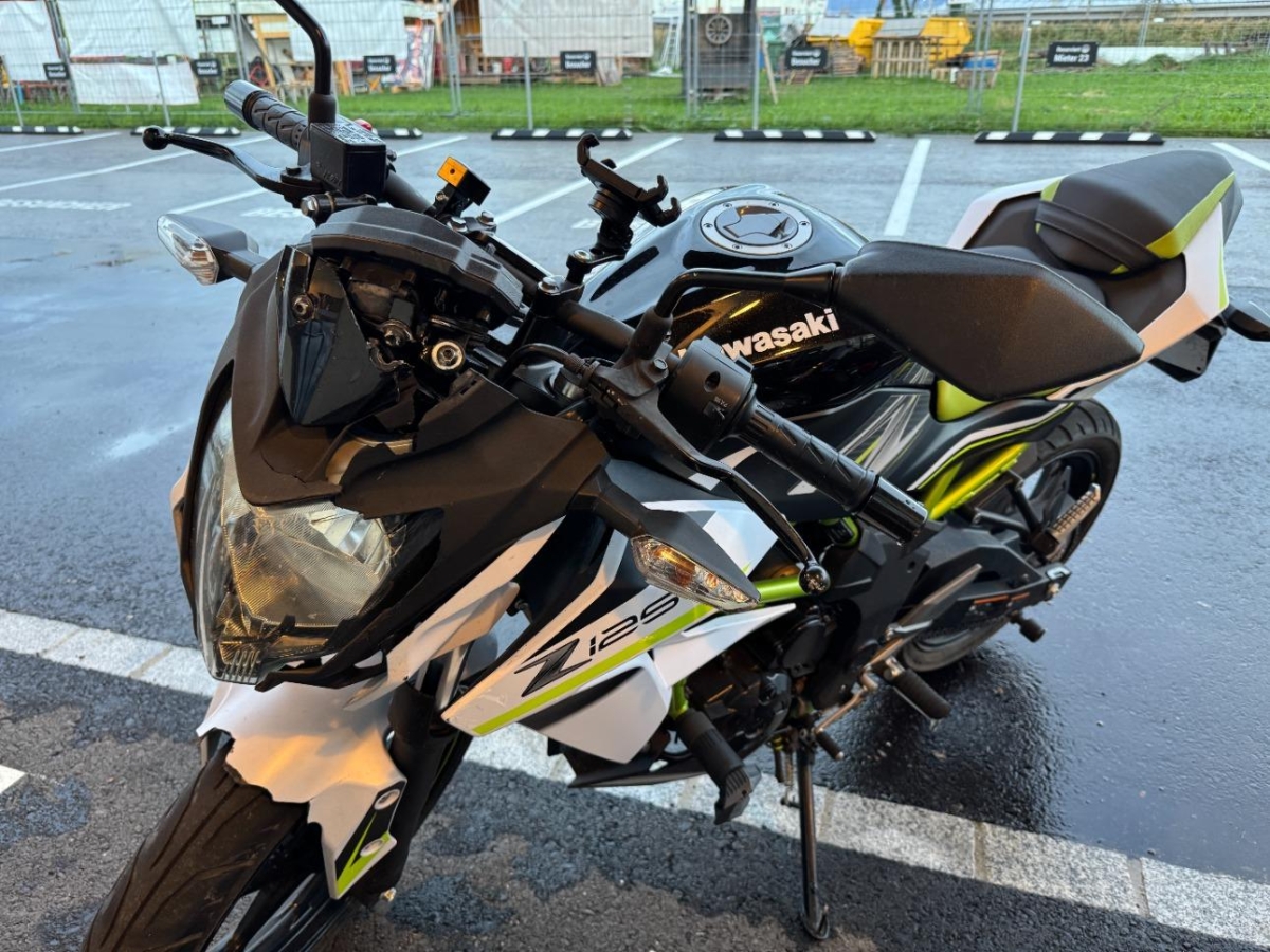Armaturen, Auspufftopf, Aussenspiegel rechts, Front, Fussraster links, Fussraster rechts, Gabelholm, Griff links, Griff rechts, Kühler, Lenkanschlag, Lenker, Rad vorne, Rahmen, Scheinwerfer, Schutzblech vorne, Tank, Verschalungen hinten, Verschalungen links, Verschalungen vorne