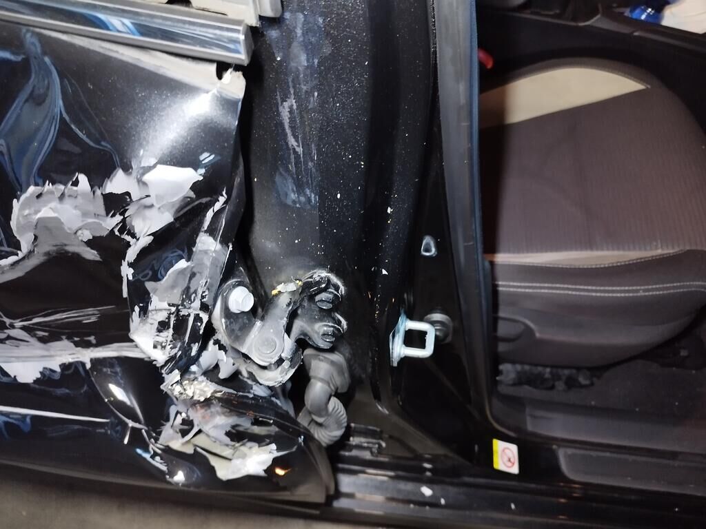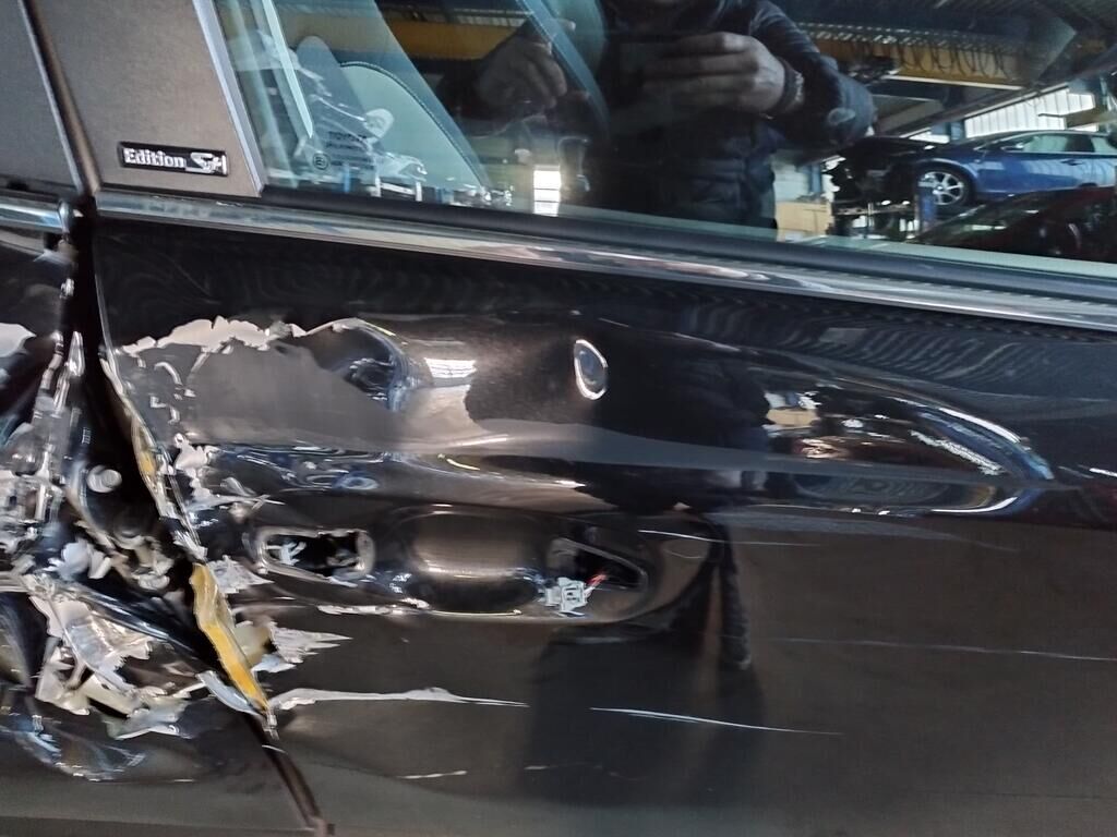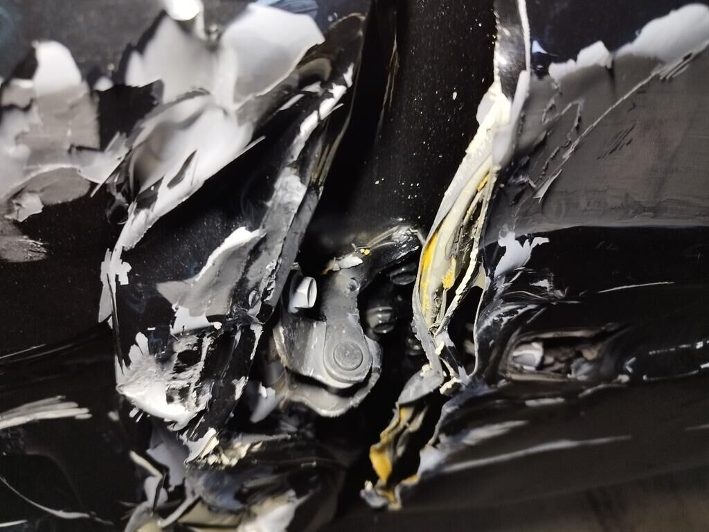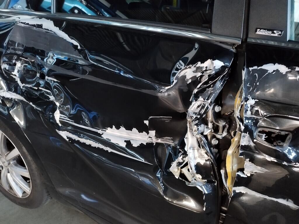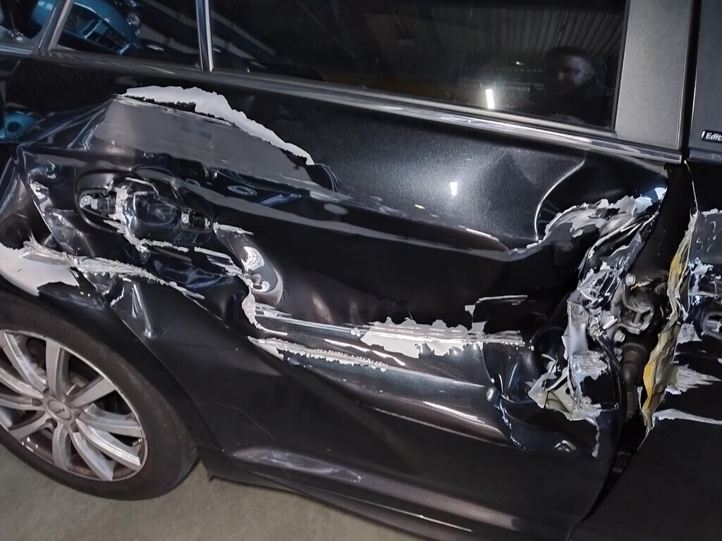Die ganze rechte Seite hat Kratzspuren und ist deformiert.