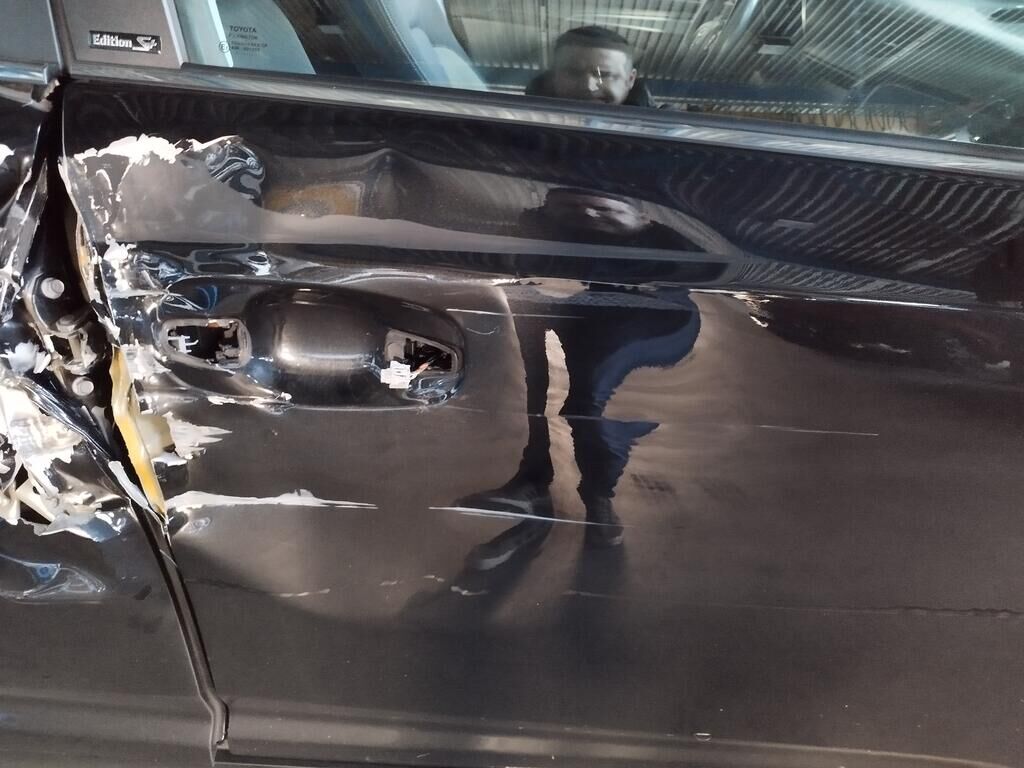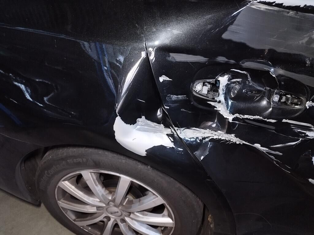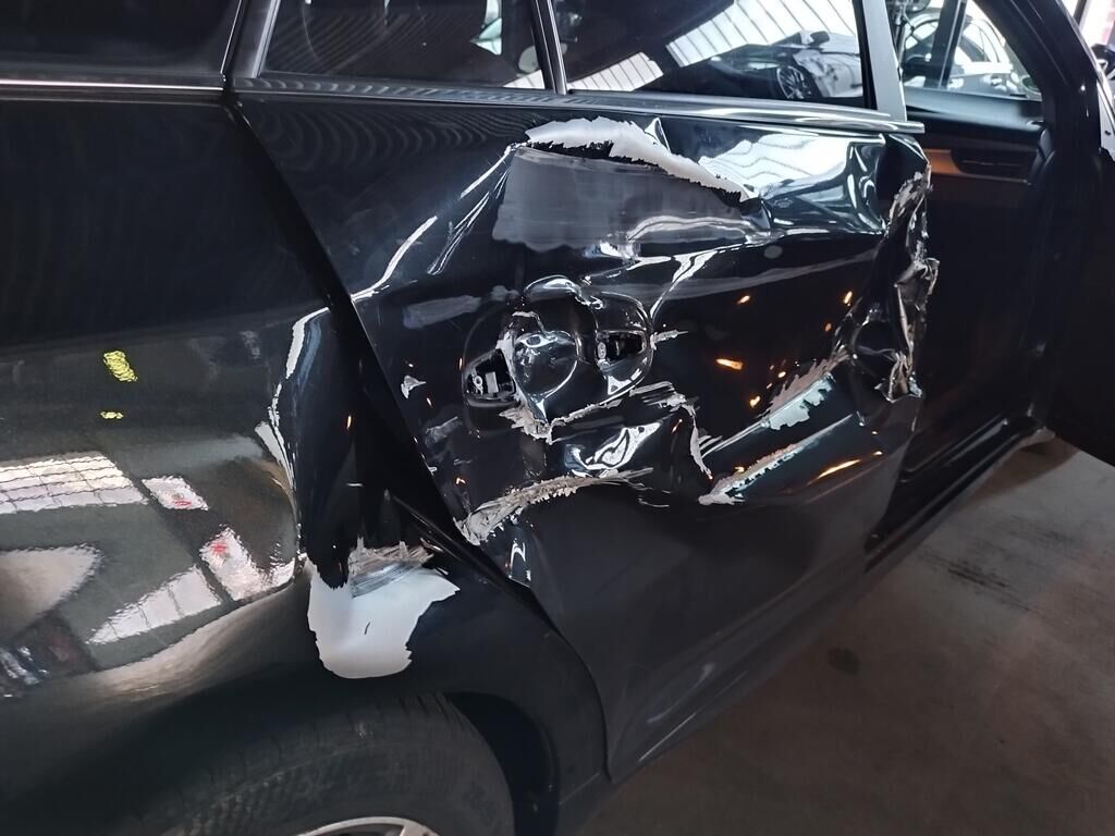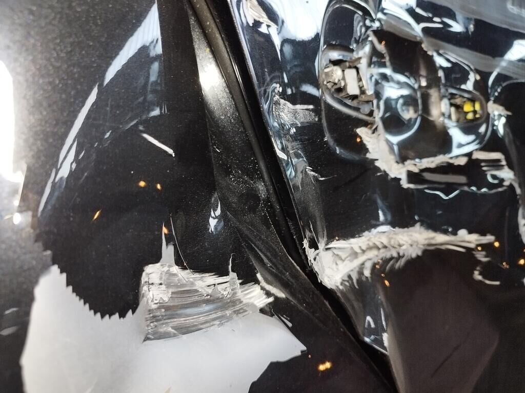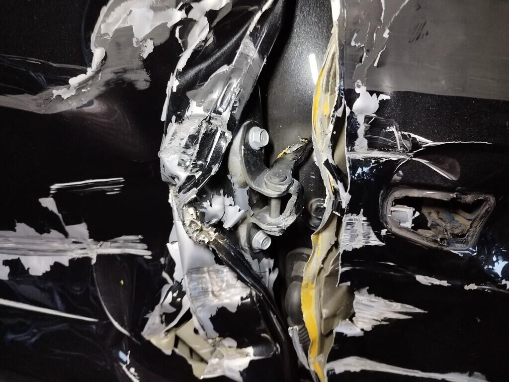 Die ganze rechte Seite hat Kratzspuren und ist deformiert.