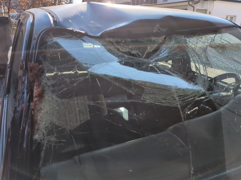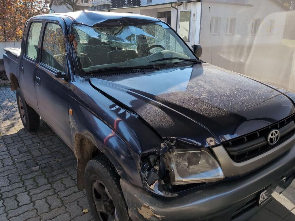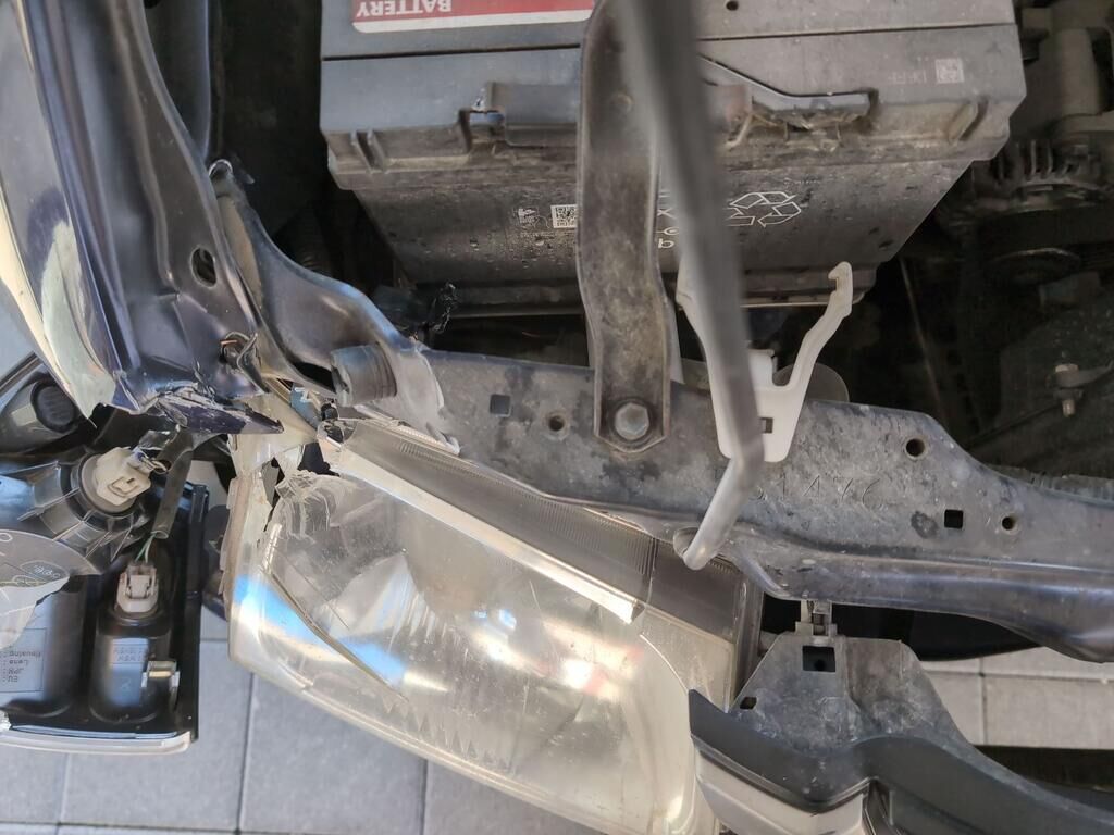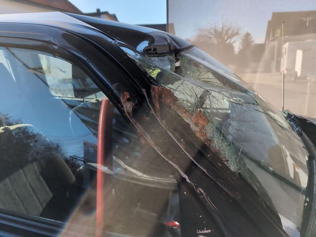 Aufprall in Fahrzeugseite rechts mit Beschädigung von Stossstange, Frontträger, Scheinwerfer, Kotflügel, Radhaus, Frontblech, Motorhaube, Türe, Frontscheibe, Dach sowie diversen Anbauteilen.