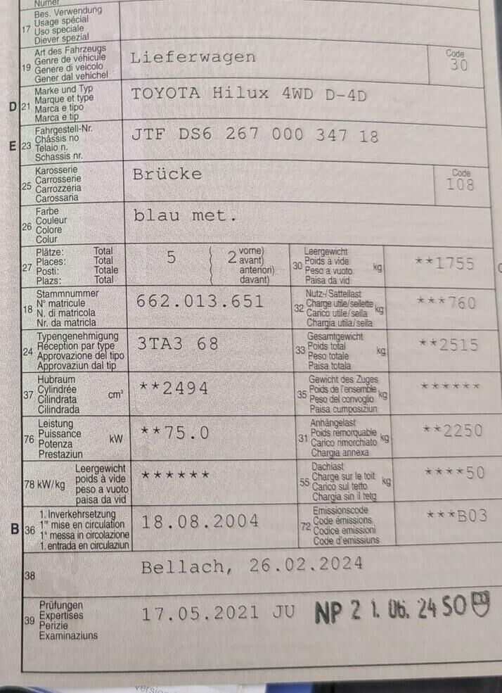 | Tipo veicolo / Costruzione / Porte | Furgone / Ponte / 4 |