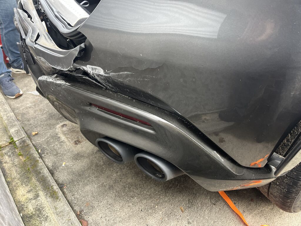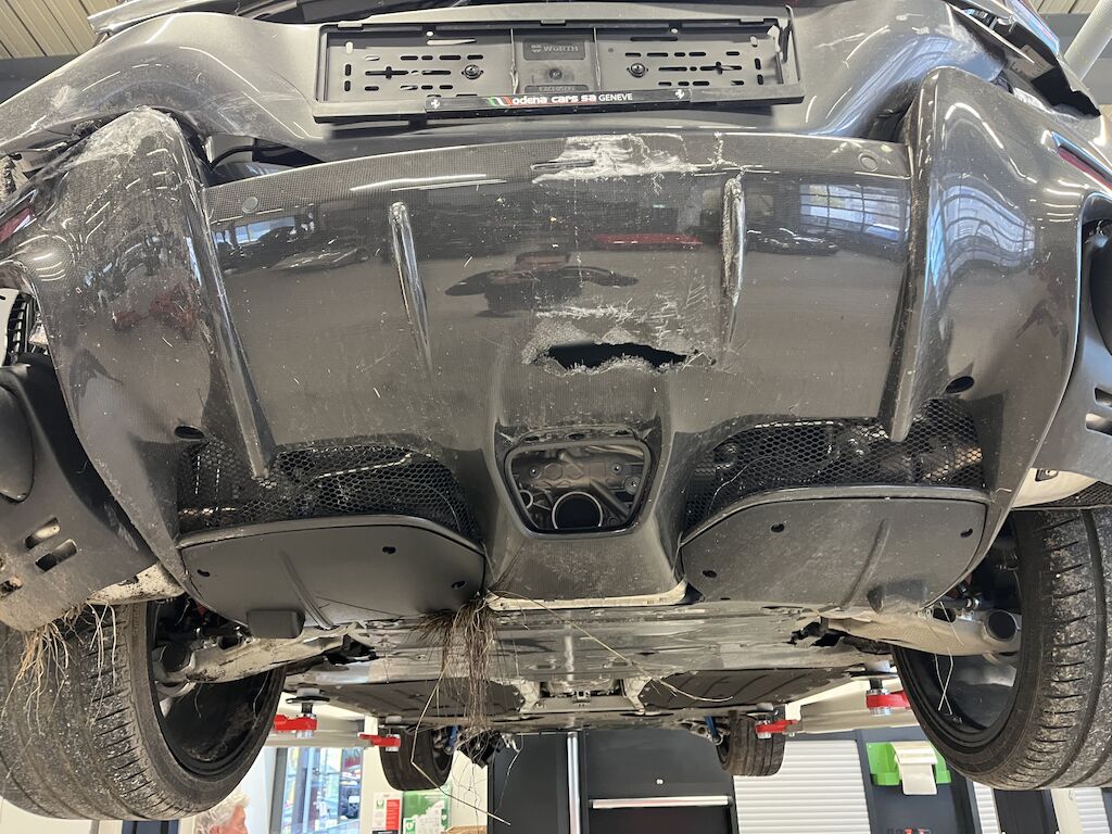 Dommage zone AV + AR + lateral gauche et AVD => Revetement de pare-chocs Av, phares, capot, charnières de capot, supports de radiateurs, radiateurs, condenseur, structure de face Av, longerons longitudinaux, longerons perpendiculaires, ailes Av, porte AV, porte Ar, Aile Ar, doublure d’aile Ar, échappements, revetement de pare-chocs Ar, tôle de fermeture Ar, hayons, tôles de soubassement, demis trains de roues et jantes AV et ARG endommagés