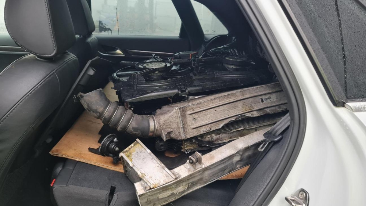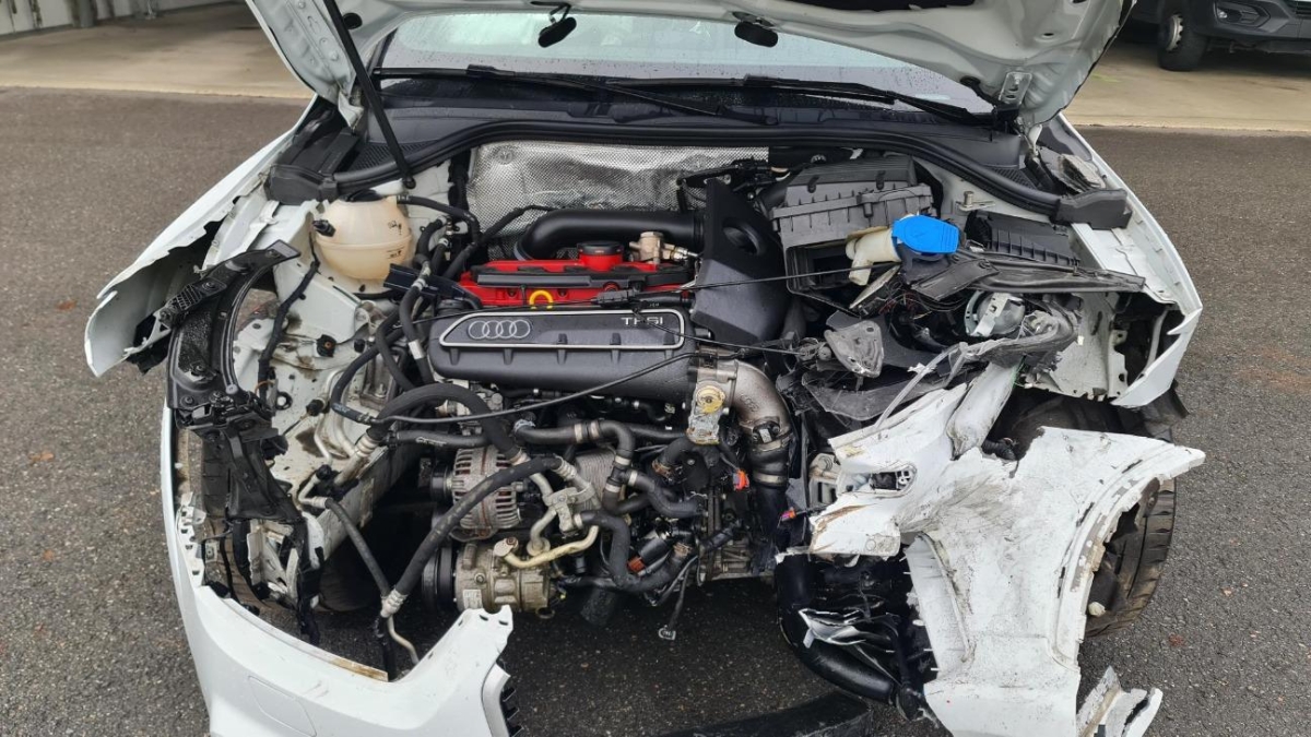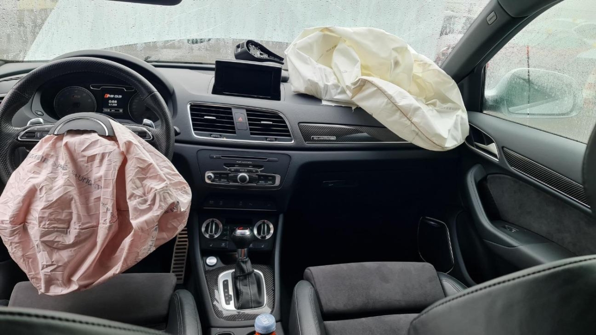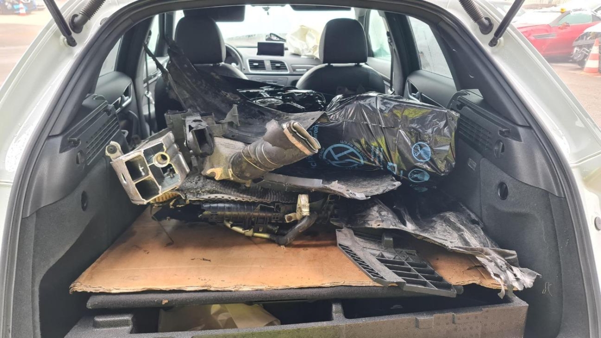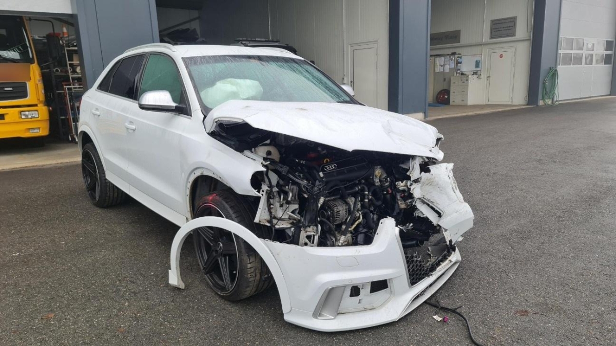 Airbag ausgelöst, Armaturenbrett, Front, Front links, Front rechts, Frontblech, Frontscheibe, Gurtstraffer ausgelöst, Kabelstrang, Klimakühler, Kotflügel links, Kotflügel rechts, Kühler, Kühlgitter, Ladeluftkühler, Längsträger vorne links, Längsträger vorne rechts, Motorhaube, Motorlampe leuchtet, Motorträger, Querträger, Radhaus vorne rechts, Scheinwerfer links, Scheinwerfer rechts, Stosstange vorne, Türe vorne links, Türe vorne rechts