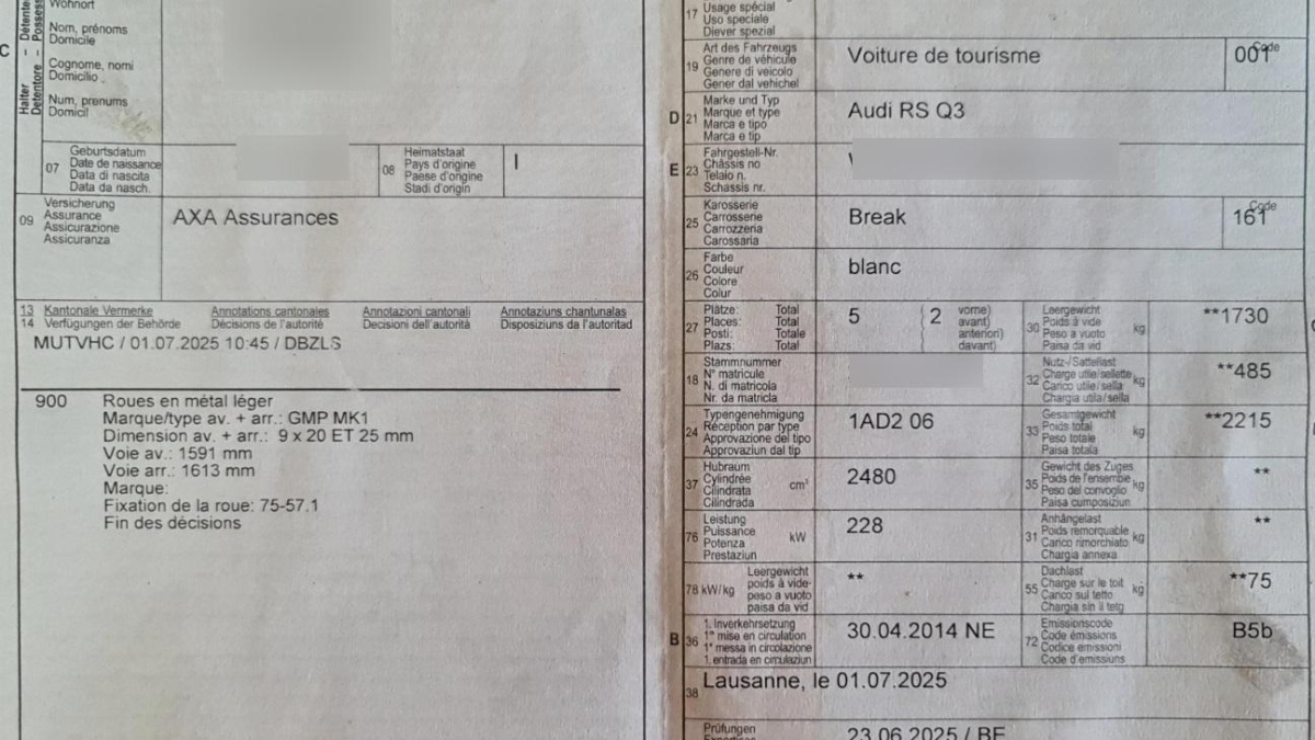 | Fahrzeugausweis | Vorhanden |