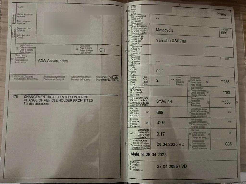 | Fahrzeugausweis | Vorhanden |