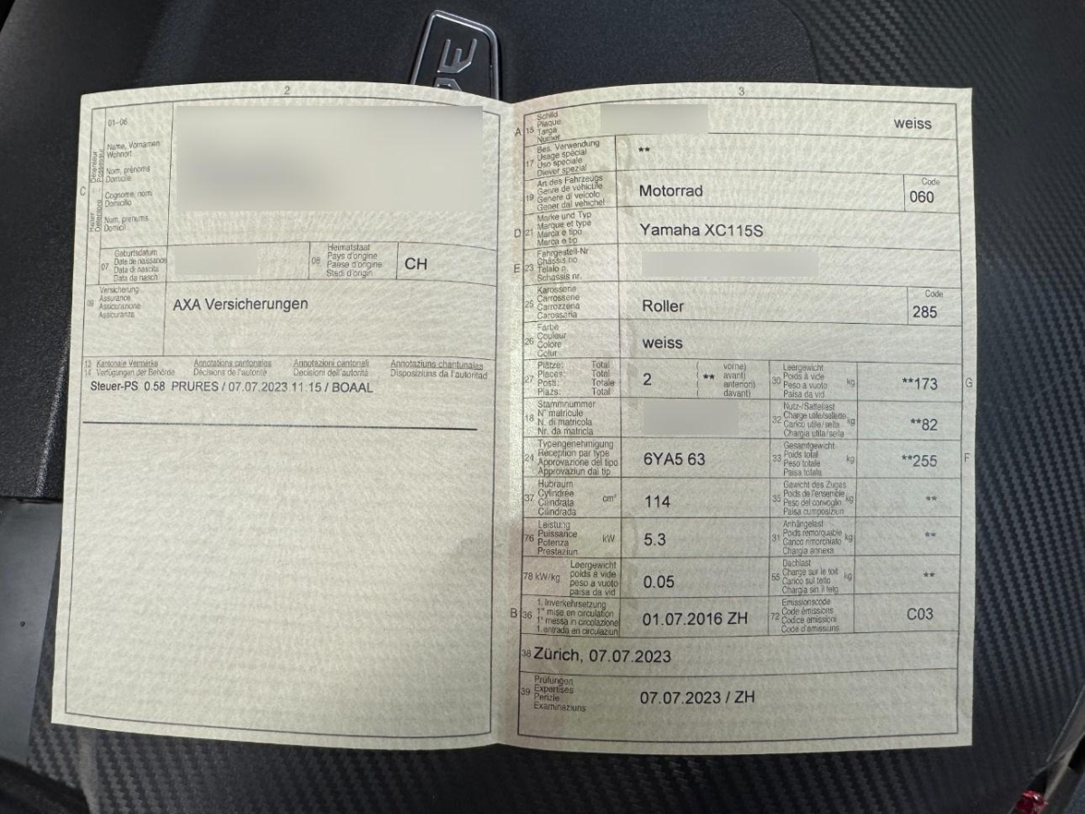 | Fahrzeugausweis | Vorhanden |