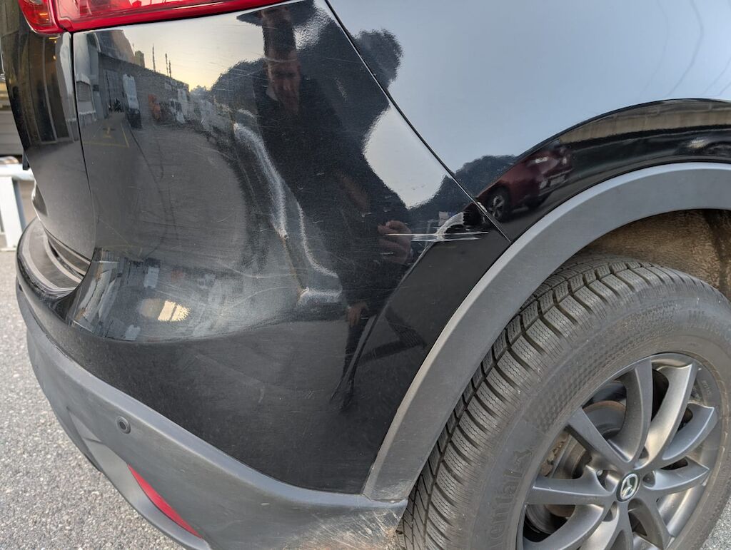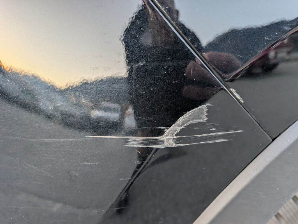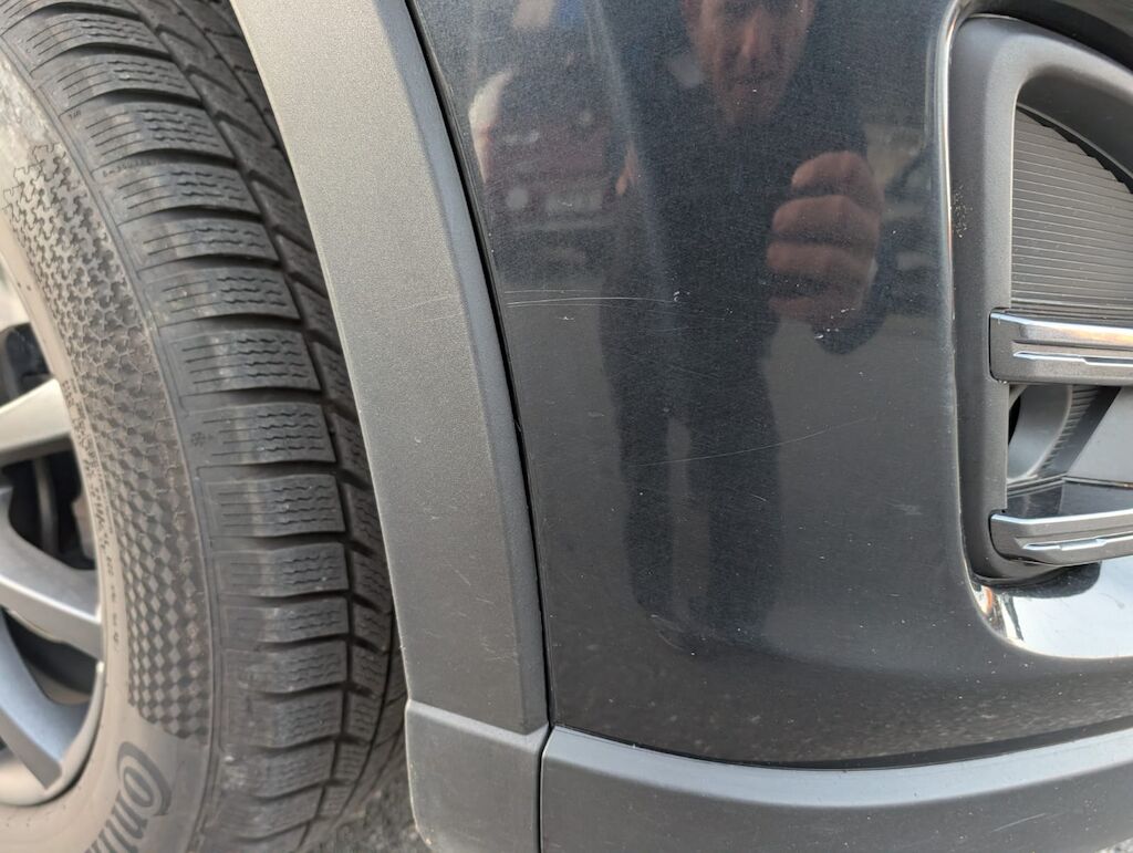 Reparierter Steinschlag auf Frontscheibe, hi. re Kratzer, Delle Heckklappe,
