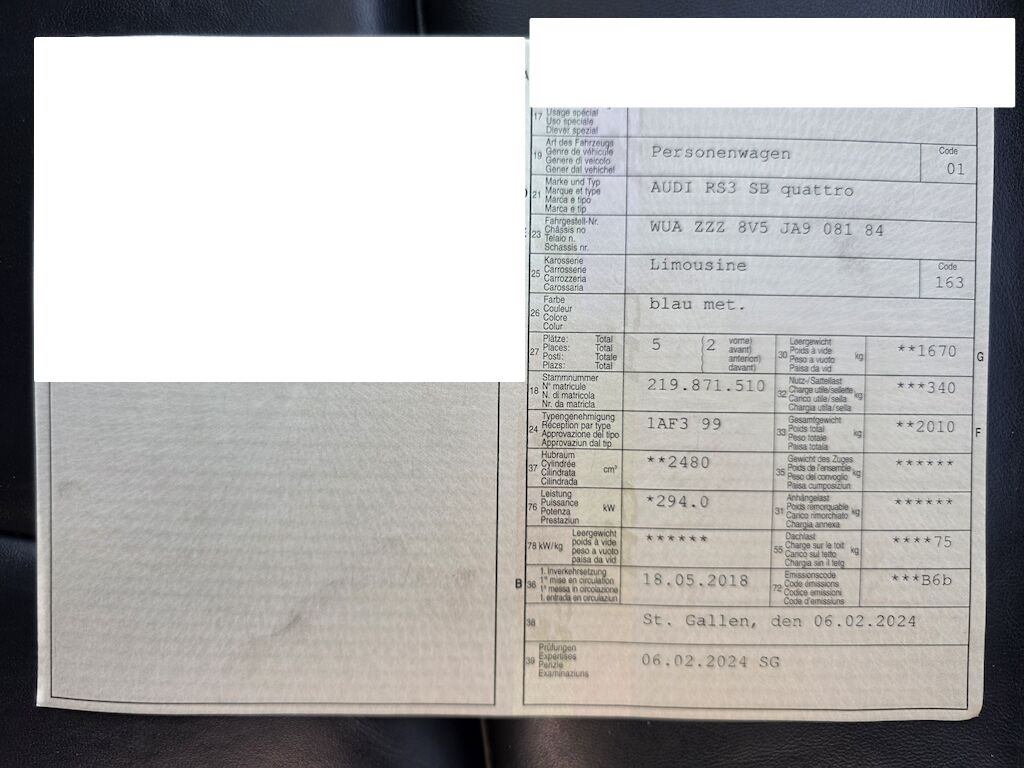 | Tipo | RS3 SB quattro |