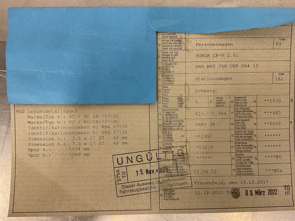 | Costi riparazione | 0.00 CHF | |