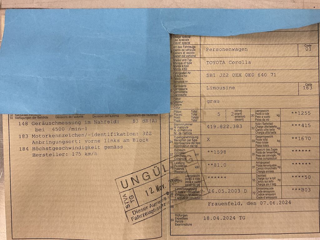 Keine technische Prüfung (Werkstatttest) vorgenommen