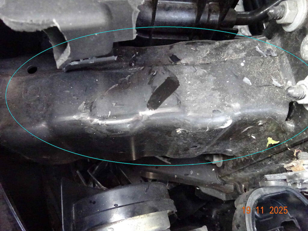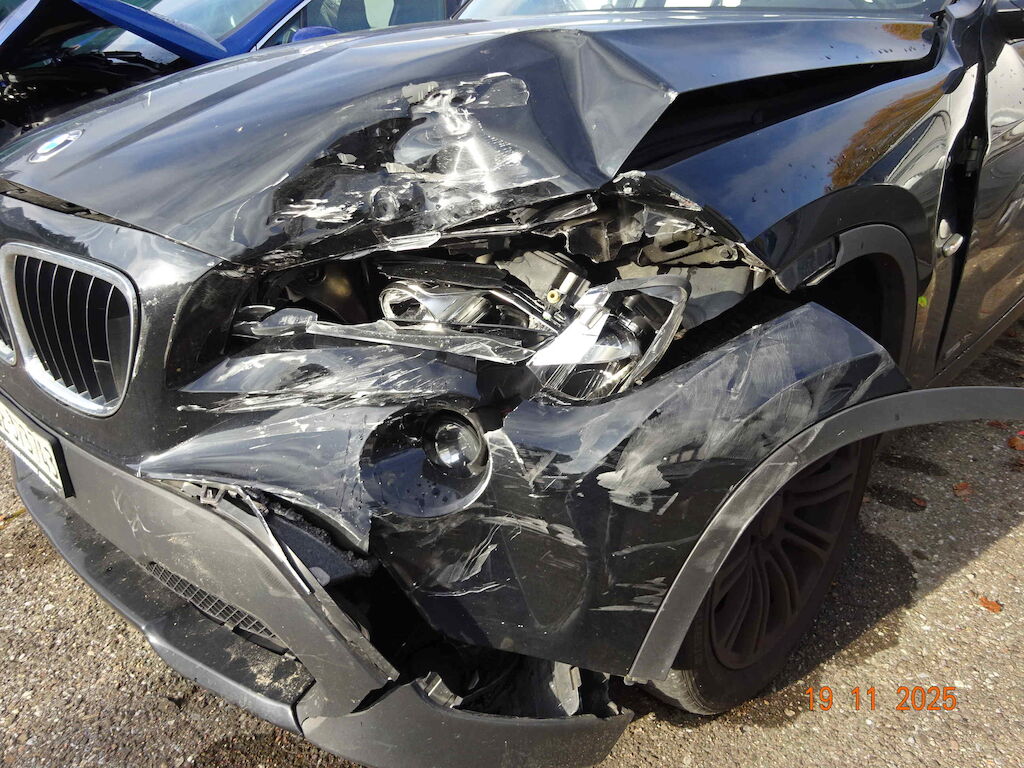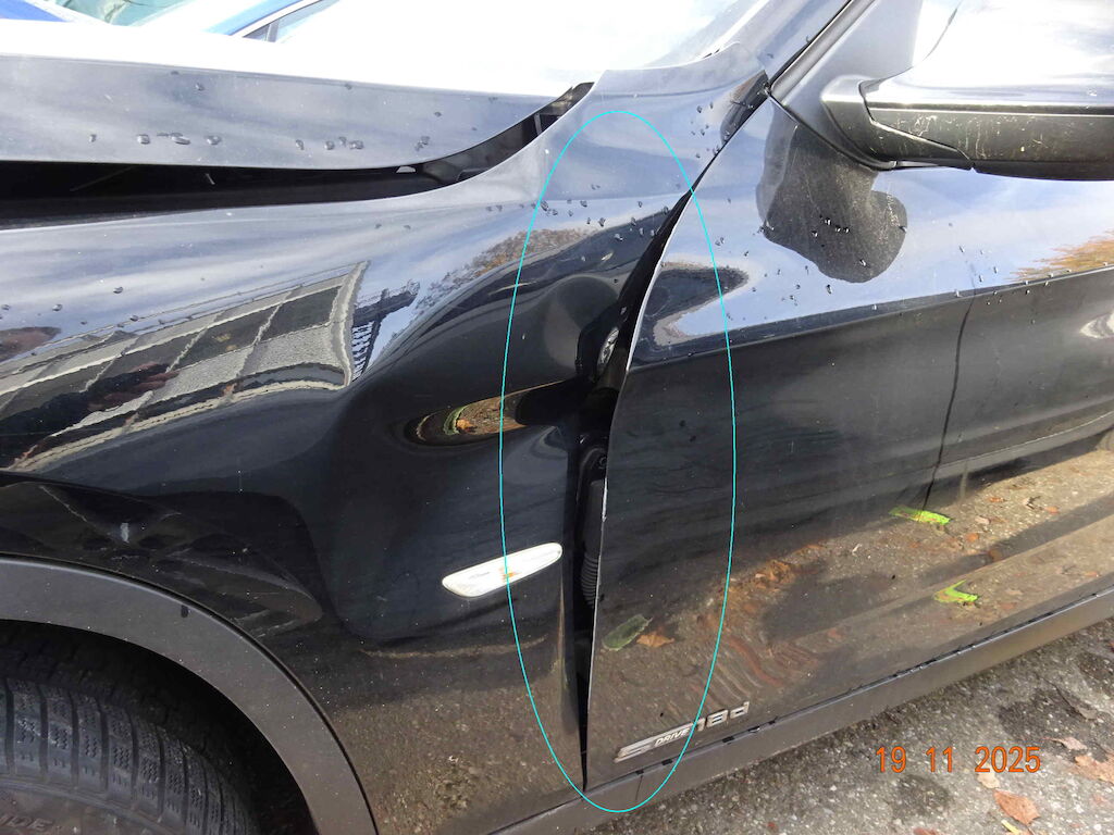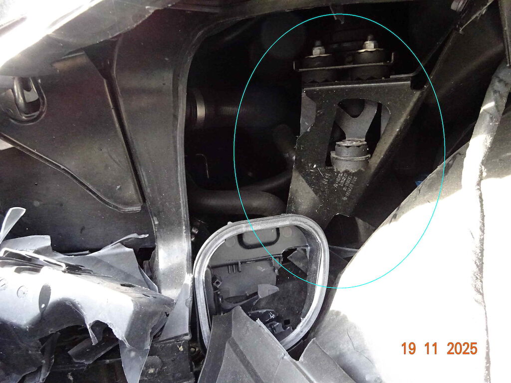 Stossstange vorne gerissen, Stossstange unterteil gerissen, Motorhaube deformiert, Scheinwerfer links gebrochen, Nebelscheinwerfer links Gebrochen, Längsträger Links leicht gestaucht, Stützenträger Kotflügel links verbogen, Kotflügel links deformiert, Türe VR leicht deoformiert,Querträger deformiert. RISIKO Aufhängung