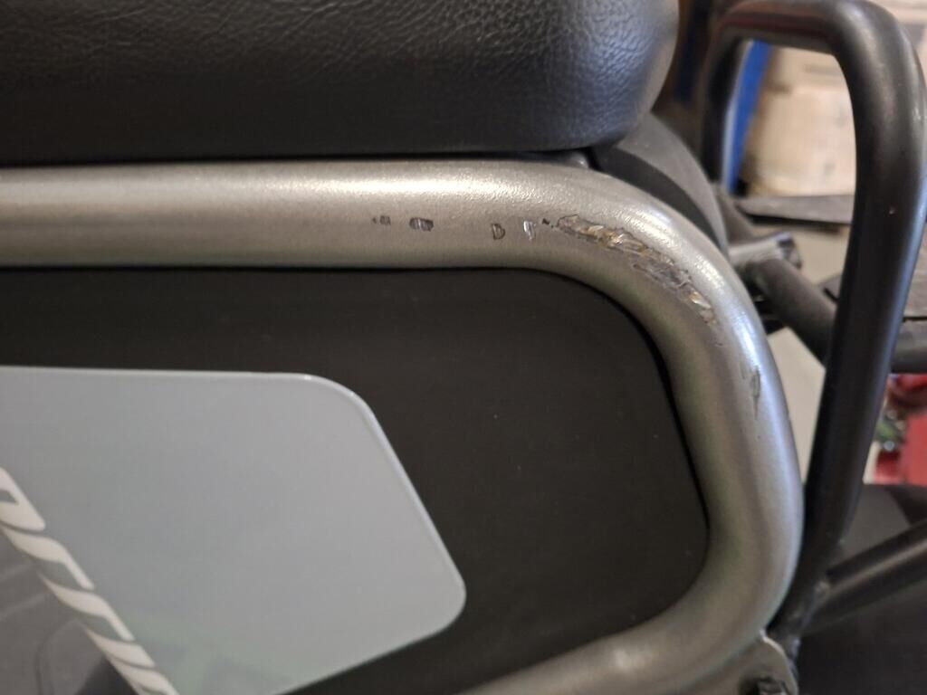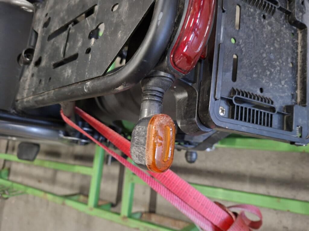 Tout le véhicule est touché / choc sur roue arrière, dommage au 2 flancs, fourche avant à du jeu, guidon, poignées, retros et divers supports et caches / véhicule démarre