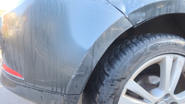 Seitenwand hinten rechts eingedellt und verzogen, Stossstangenabdeckung hinten rechts gerissen und beschädigt, Felge hinten rechts beschädigt.