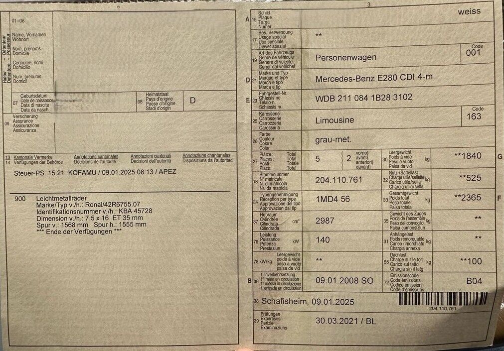 | Prima immatr. | 09.01.2008 |