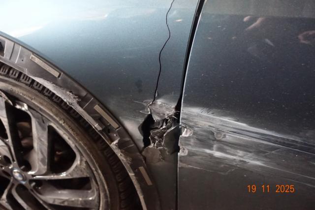 Beschädigungen Links Linke Seite beschädigt. Schweller links ist eingedrückt. Tür vorne links ist eingedrückt. Tür hinten links ist eingedrückt. Front Achse Elektrik Weitere Beschädigungen |