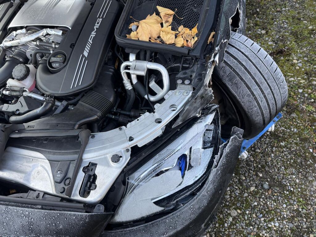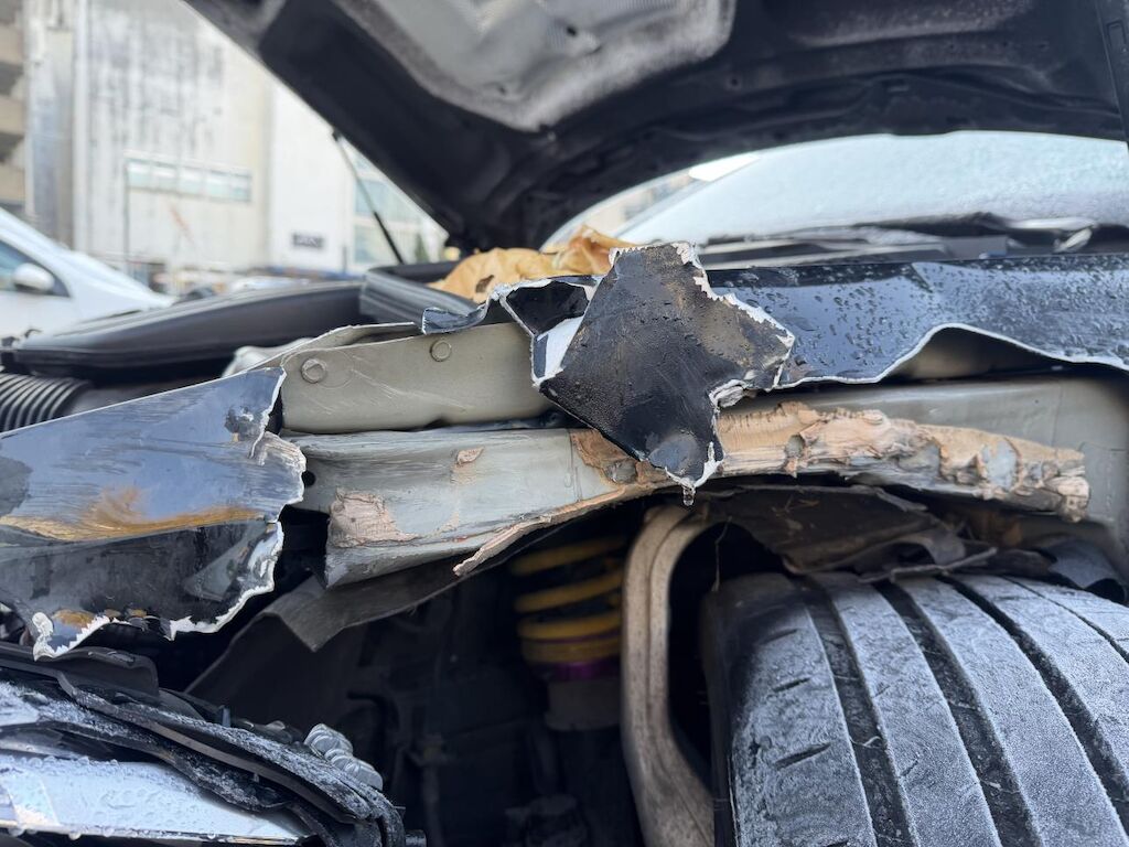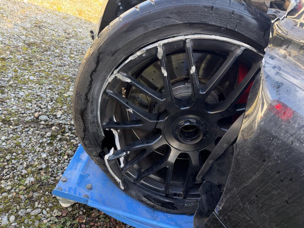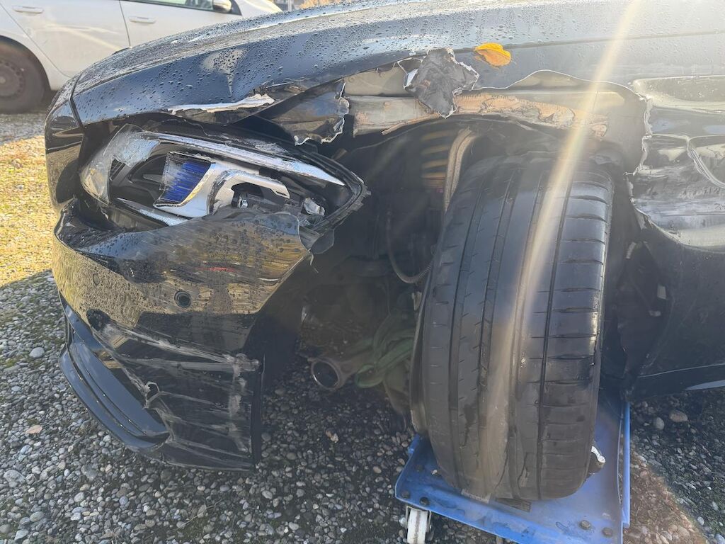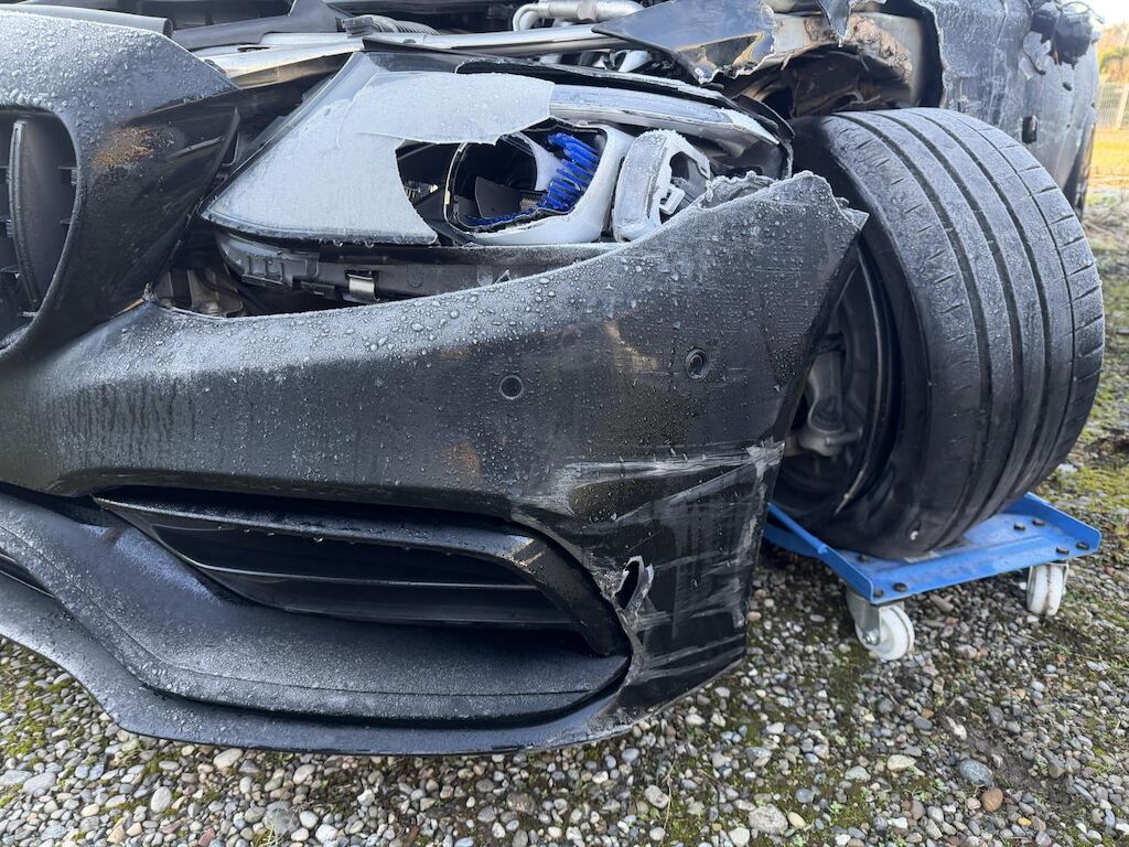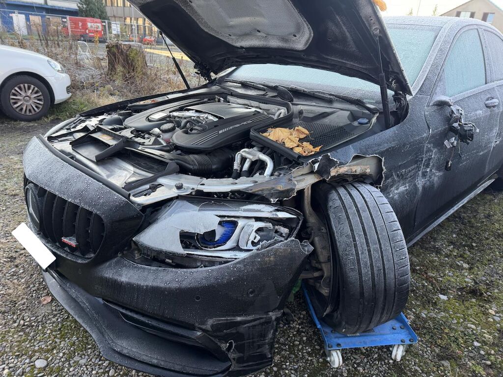 Dabei wurden die Stossstange, die Motorhaube, der Kotflügel, der Radkasten, der obere Längsträger, beide Türen, die Seitenwand, beide Felgen, beide Fahrwerke sowie diverse Anbauteile deformiert.
