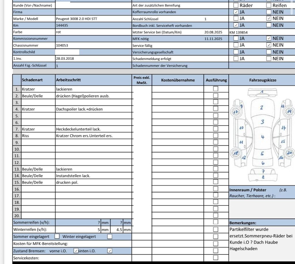 Keine technische Prüfung (Werkstatttest) vorgenommen