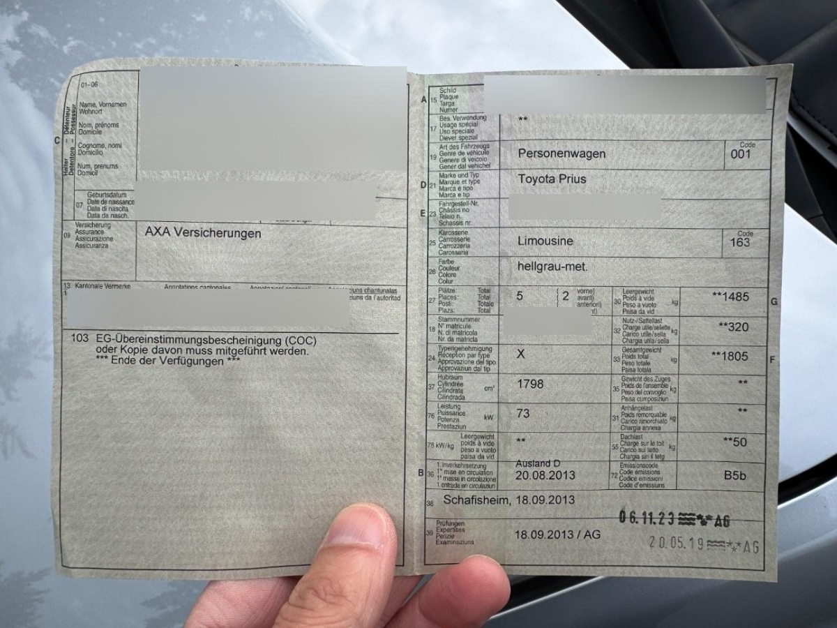| Fahrzeugausweis | Vorhanden |