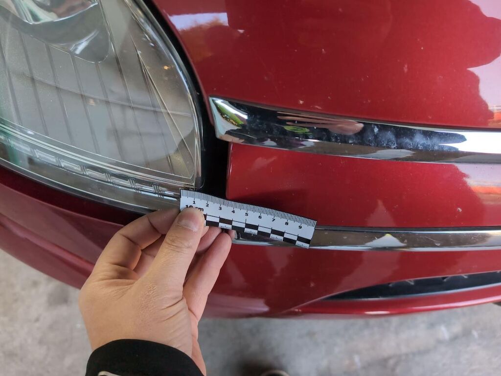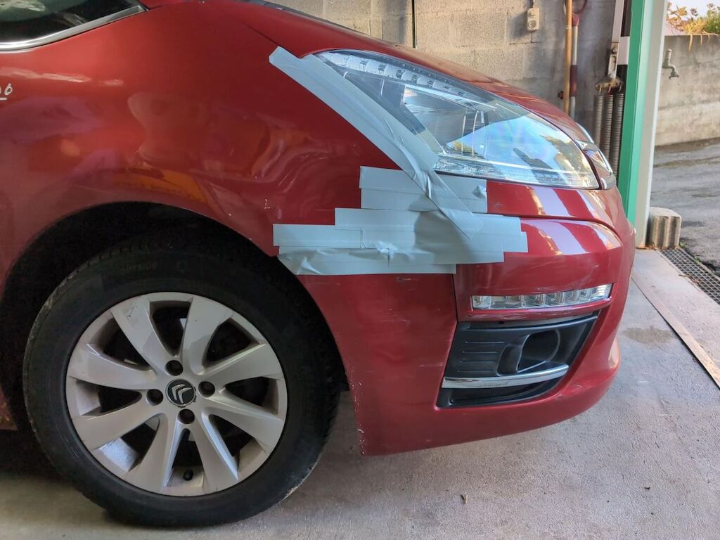 Kollisionsschaden, Aufprall in Fahrzeugseite rechts mit Beschädigung von Stossstange, Scheinwerfer Kotflügel sowie diversen Anbauteilen.